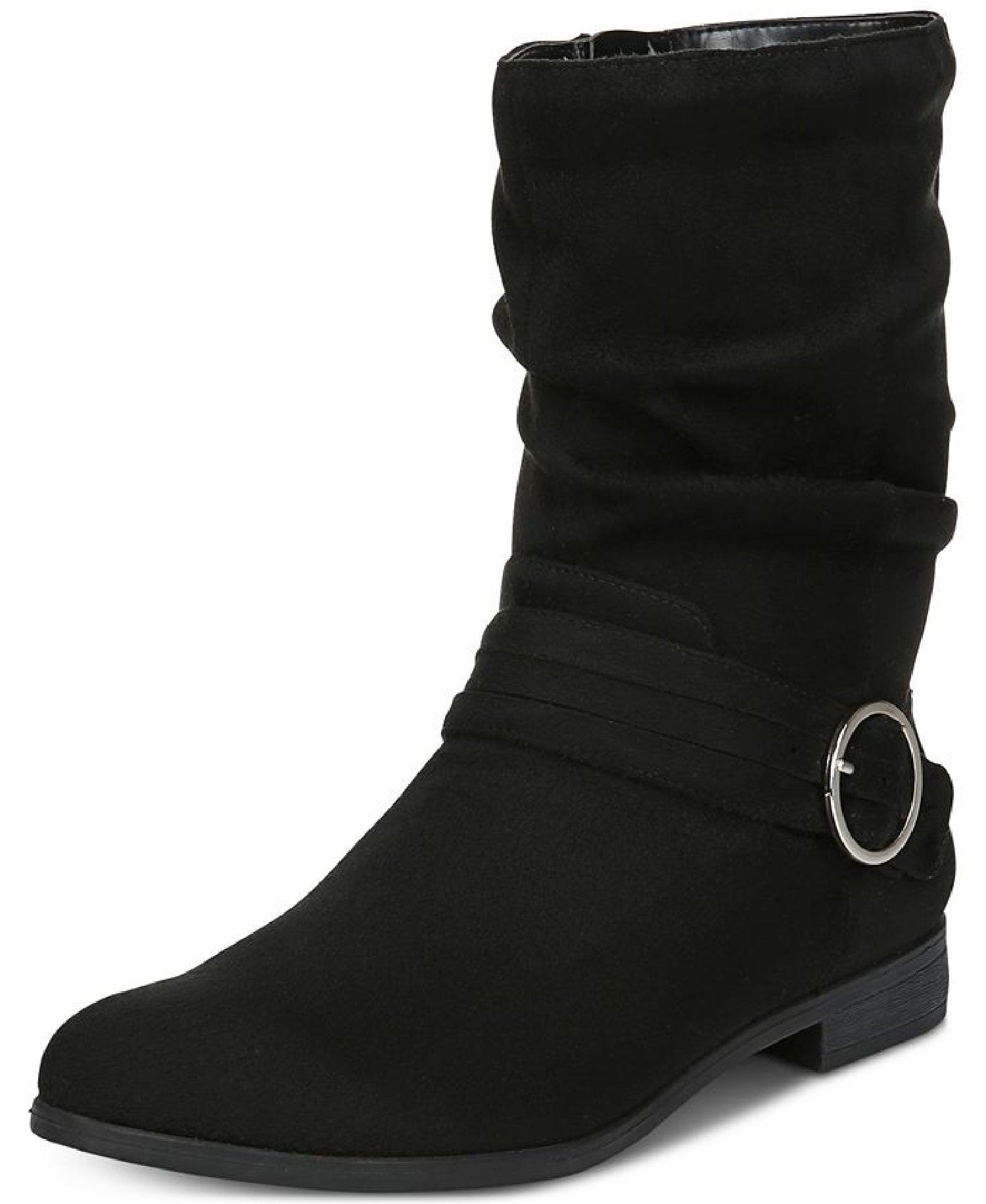 Pairing a ring buckle accent and casual slouching with cushioning comfort technology| the Ripple boots by Dr. Scholl's feel as good as they look.| 1 heel| Round-toe boots with side zipper| Buckled strap detail at ankle; slouching at shaft| Be Energized insole with all-day comfort| cushioning