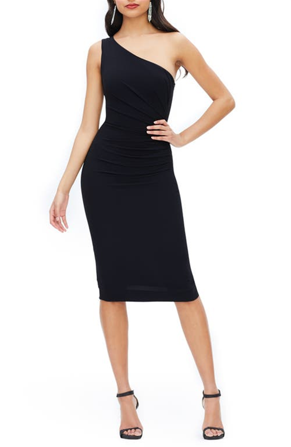 Dress the Population Martine Stretch Crepe One-Shoulder Dress in Black Size X-Large