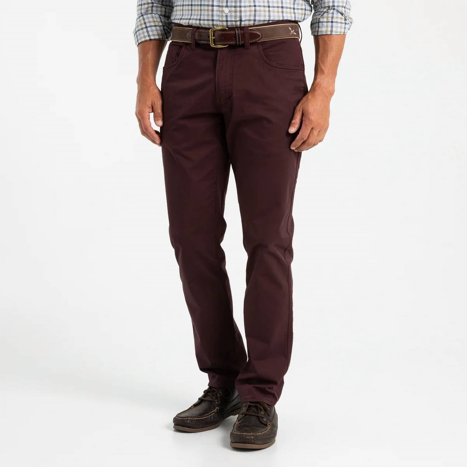 Introducing the Shoreline Five-Pocket Pant by DUCK HEAD, a classic straight-leg chino in rich Dark Cognac crafted for everyday comfort. These pants boast a breathable 97% cotton, 3% spandex stretch twill material that ensures an effortless fit, complete with an iconic gold label on the coin pocket and DH leather patch on the back right pocket. The convenient zip closure with a YKK zipper complements the flat felled double stitched seams for enhanced durability. Easy to care for, simply machine wash and tumble dry; these chinos feature a 14¾” leg opening based on size 32/32.