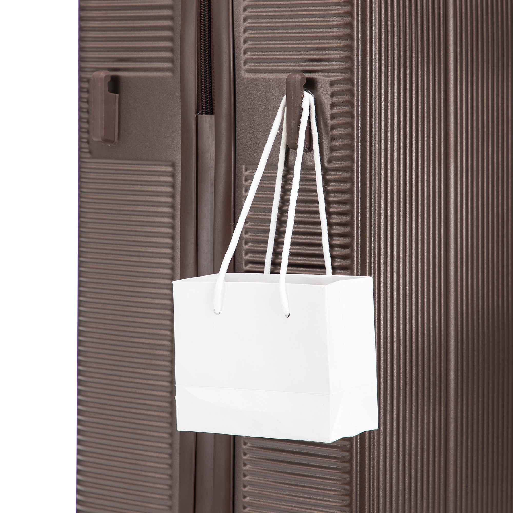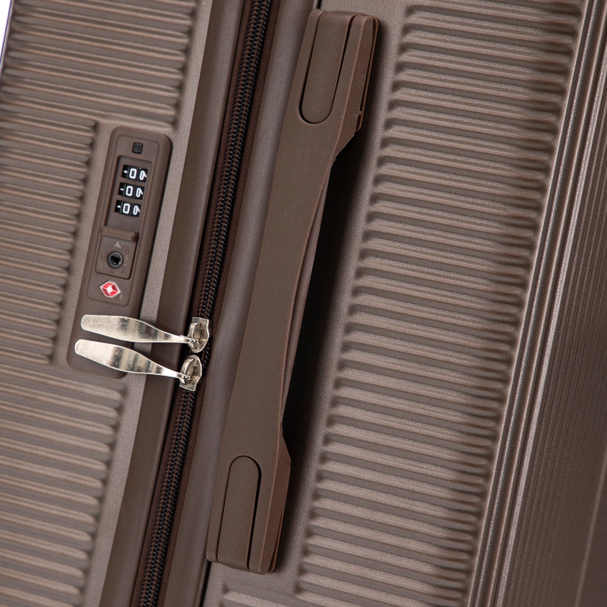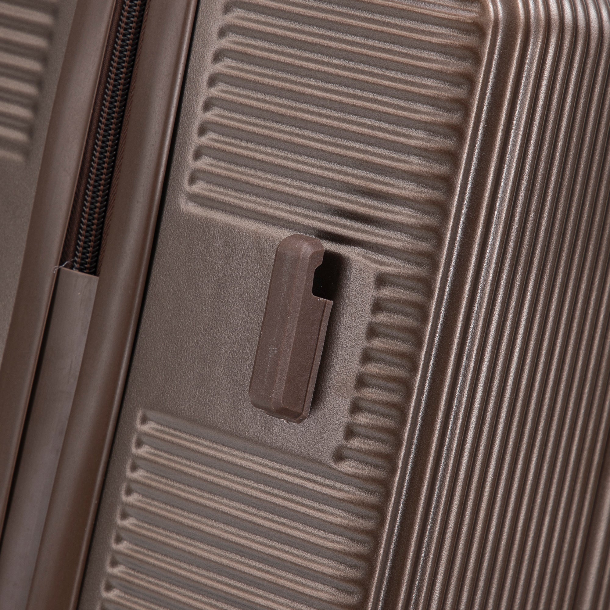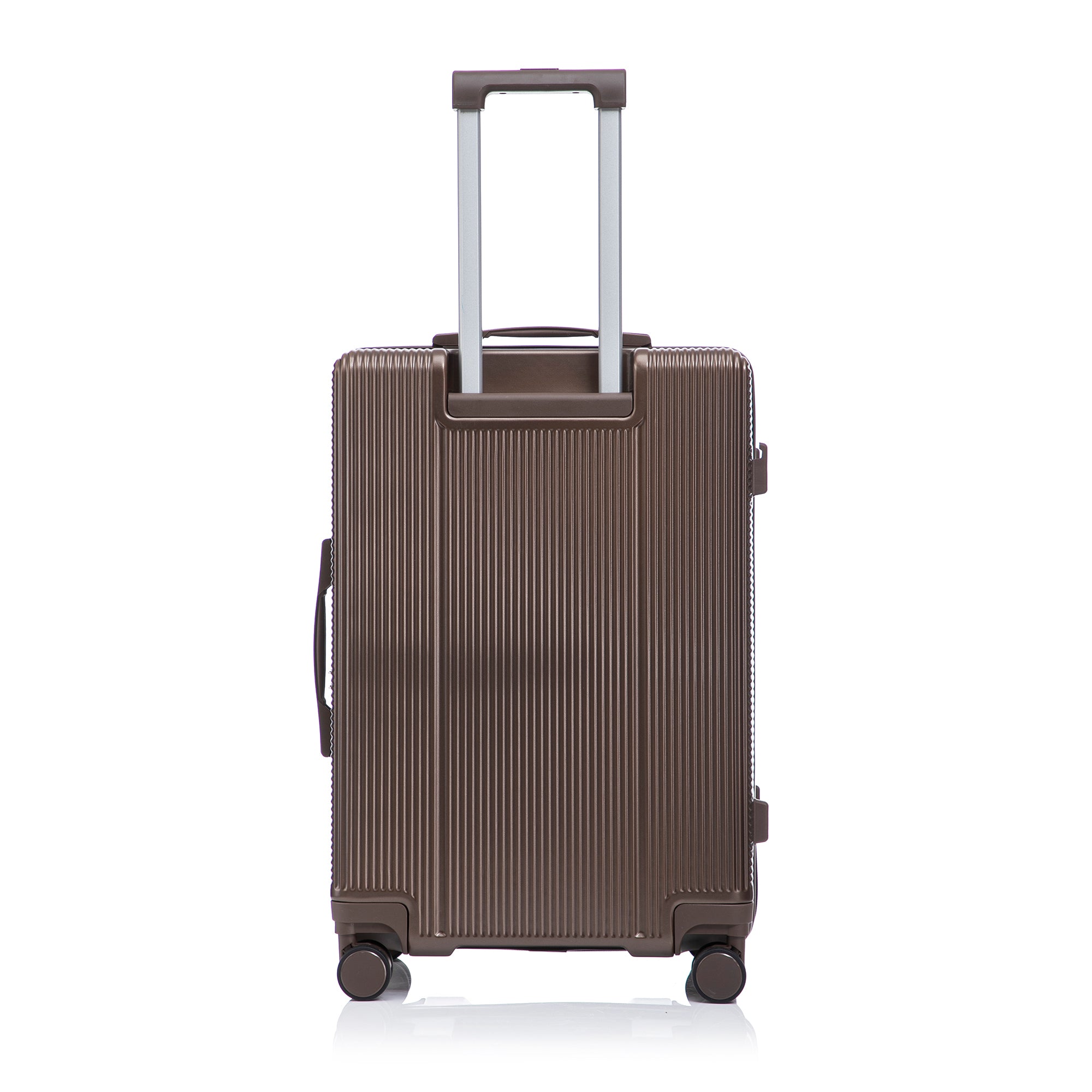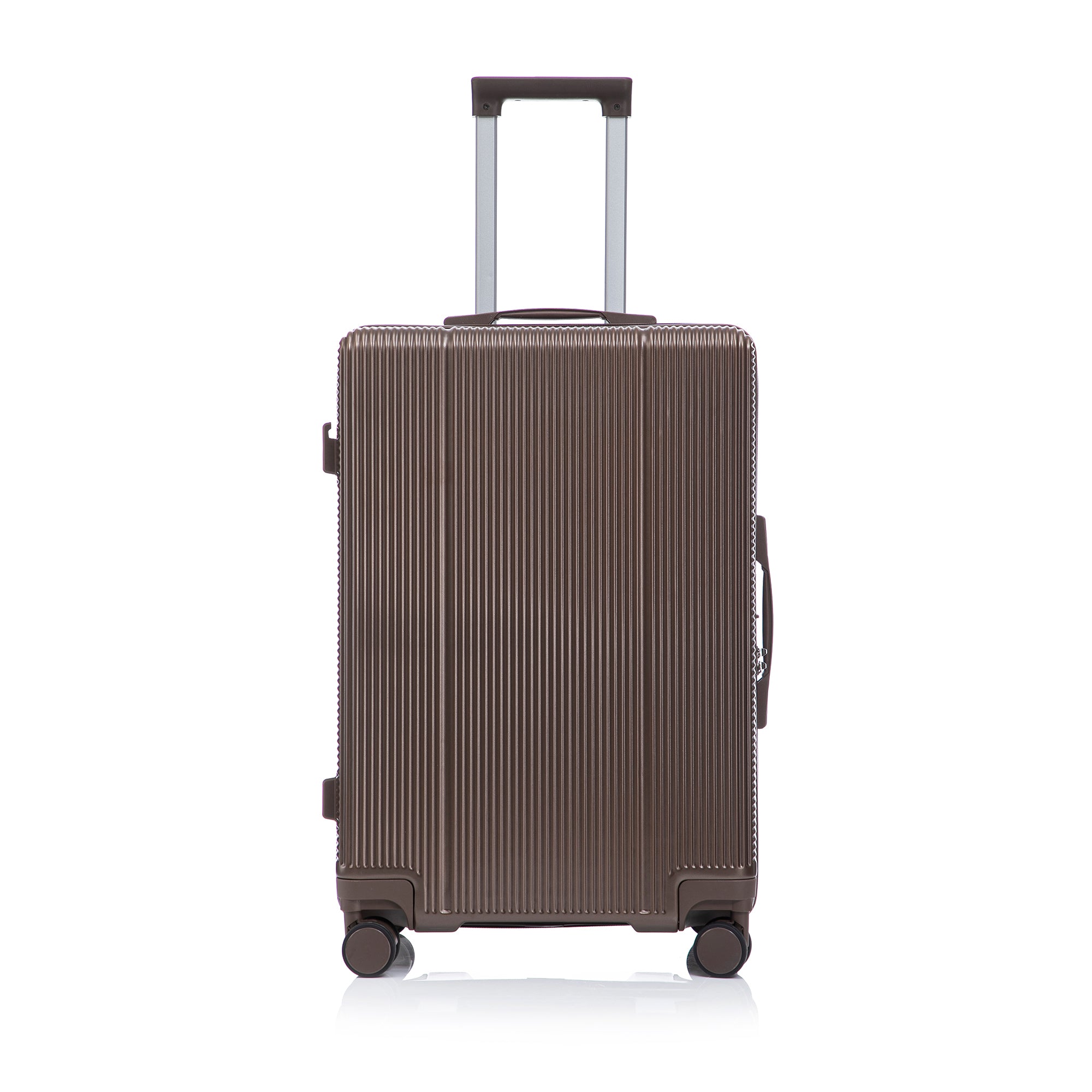 The elegant vertical stripe design adds style while increasing resistance to scratches and pressure. Each suitcase includes four molded side feet, allowing it to stand upright and stable, even when laid on its side.