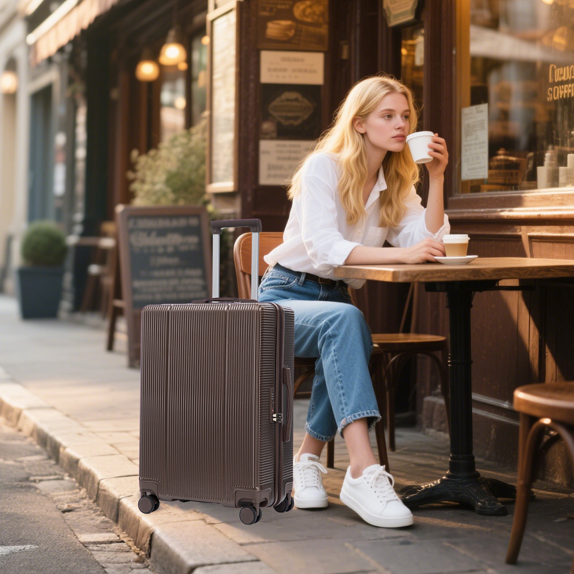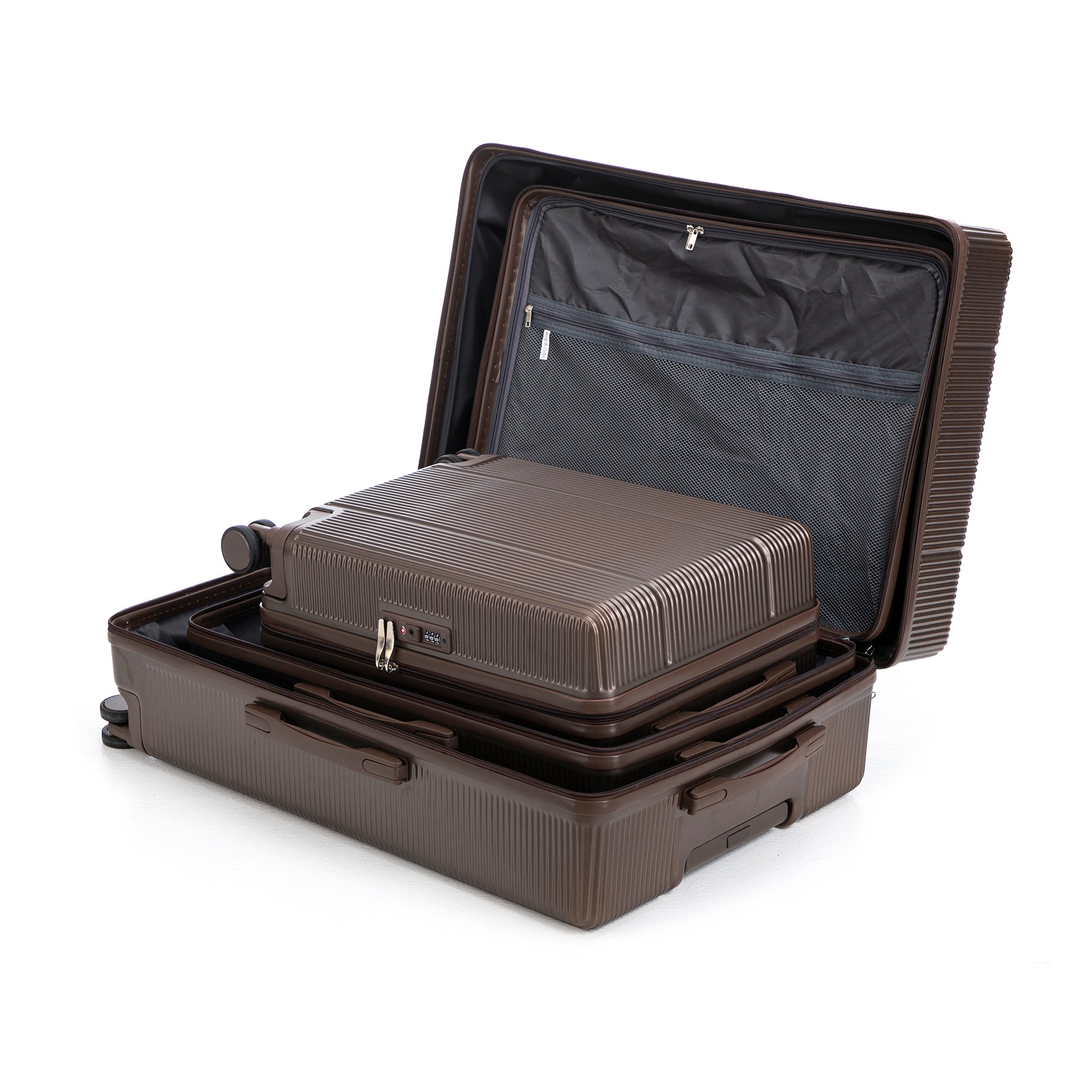 3-Piece Luggage Set – 20" / 24" / 28" ABS Spinner Suitcase with 360° Wheels & Combination Lock (Brown)