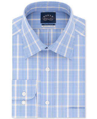 A classic fit; also known as a regular fit; offers a generous cut throughout the chest and waist for overall ease; features standard armholes and fuller sleeves|Non-iron|Spread collar stretches up to 1/2|A traditional Barrel cuff fastened by a single button closure|Plaid pattern; patch pocket at left chest|100% cotton