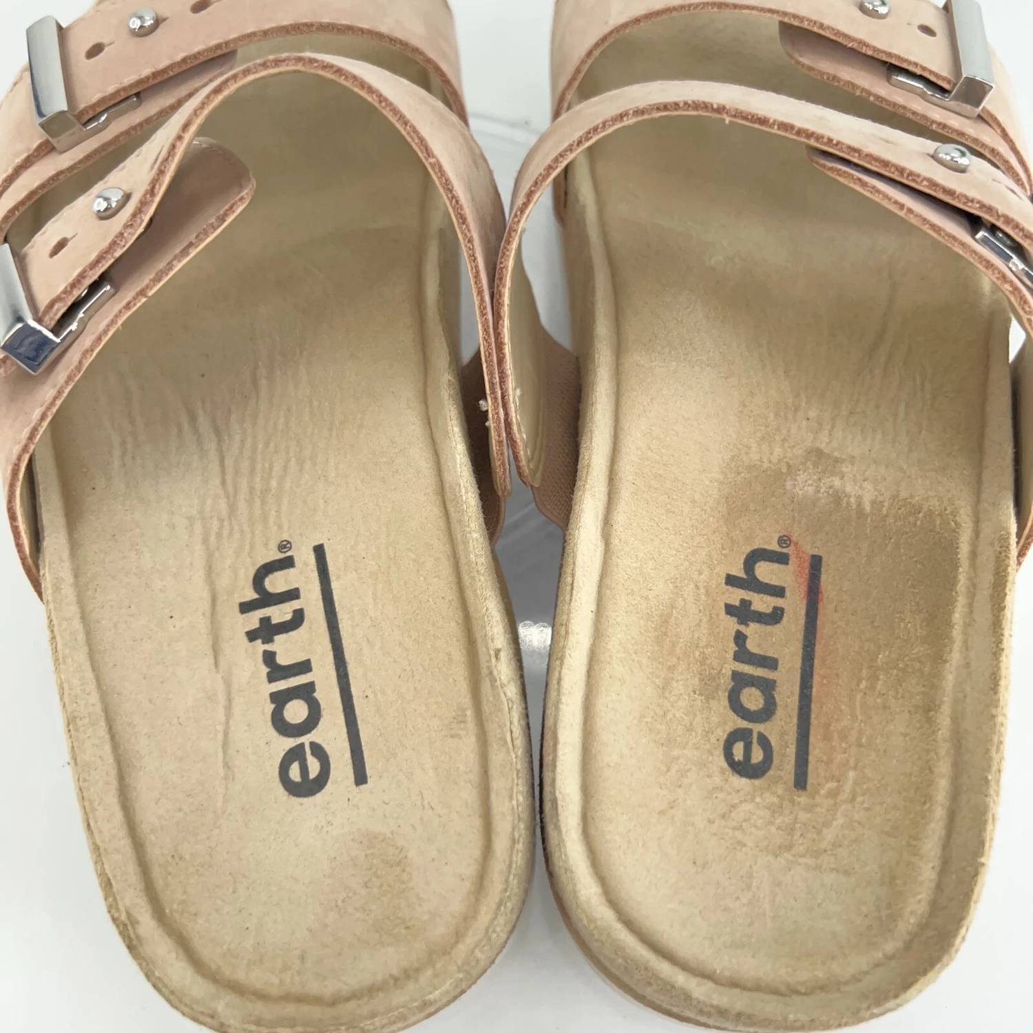 Flowy dresses, cropped pants, and even jumpsuits... this sandal works with them all! Step into style with the Women's Canyon Ruby Slide Sandals by EARTH, perfect for any occasion. Crafted with a solid blush pink leather upper, these sandals feature a comfortable low 1 to 1.9-inch wedge heel and a chic open toe design. The buckle closure ensures a secure fit, while the leather lining and insole offer ultimate comfort. Ideal for casual outings, cocktails, or travel, and boasting a rubber outsole for reliable traction.
