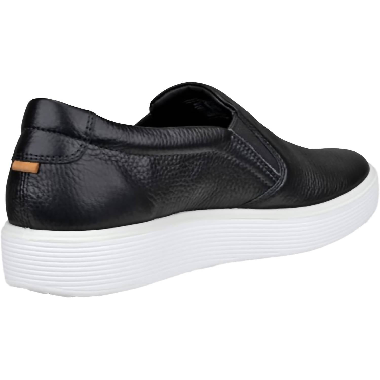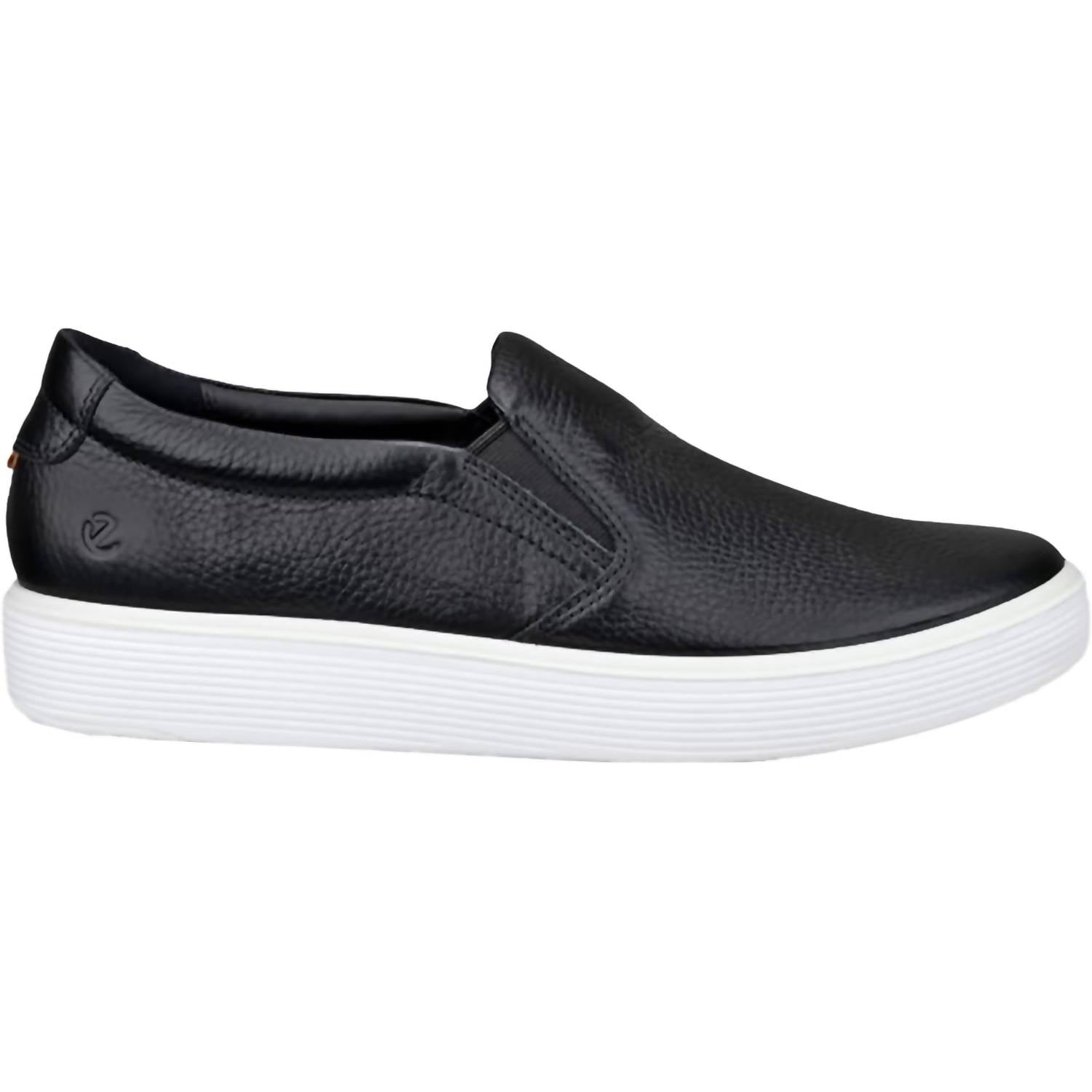 Loafers so versatile you can wear them with just about anything. Introducing the ECCO Women's Soft 60 Slip On Flats, a minimalist design in sleek black leather. These low-cut shoes feature elastic detailing and a padded vamp for an unparalleled comfort experience. Designed with ECCO FLUIDFORM™ anatomical fit and a lightweight, cushioned footbed for superior shock absorbency, they also include a removable insole for a custom fit. Elevate your casual wardrobe with these adaptable, grip-enhanced shoes that are perfect for spring vacations.