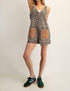 Unleash your wild side with the ee:some Sleeveless Leopard Contrast Pocket Romper, a standout piece for your casual wardrobe. Crafted from 100% cotton, it features a bold leopard print and contrast patch pockets with raw edge detailing for a boho chic aesthetic. Designed with a V-neckline and back, this romper ensures a relaxed silhouette, complete with a convenient side zipper closure. Perfect for a fall getaway or a casual Thanksgiving gathering.