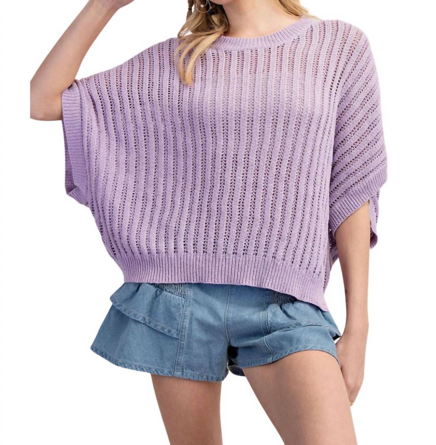 Pair this with your favorite jeans and slides for your next girls night out. Elevate your summer wardrobe with the Spring Dolman Sleeve Top by ee:some, crafted in a soothing lavender hue. This women's blouse features an elbow sleeve length and a crewneck design, elegantly highlighting its solid cotton material. Effortlessly stylish, it adopts a pull-on closure for convenience. Easy to care for, simply machine wash and tumble dry.