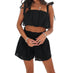 The Weekend Duo Crop Top and Short Set by ee:some is a must-have loungewear ensemble designed for warm weather ease. This chic black set is sleeveless with a flattering smocked bodice and a square neckline, complemented by flowy shorts with a high-rise waistband. It's the ideal choice for vacation and spring occasions, fitting seamlessly into any streetwear trend. With a solid pattern and effortless style, this two-piece set promises to elevate your seasonal wardrobe.