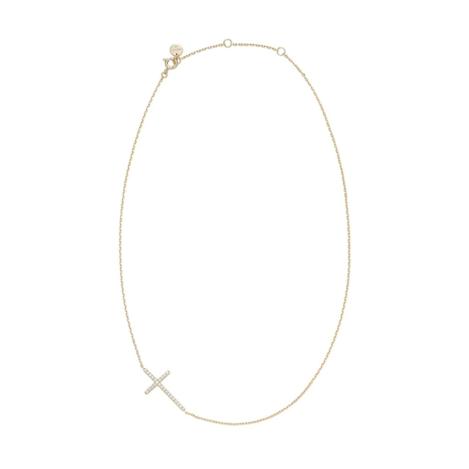 Eklexic - Women's Horizontal Cubic Zirconia Cross Necklace