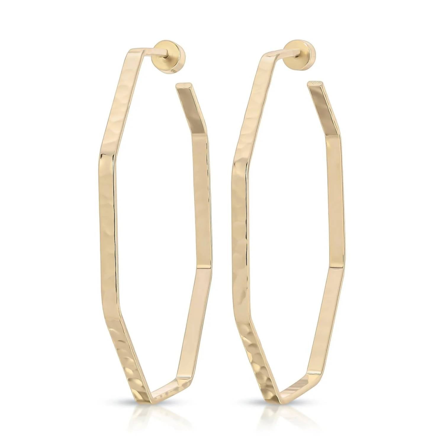 Eklexic - Women's Large Hammered Octagon Shaped Hoops