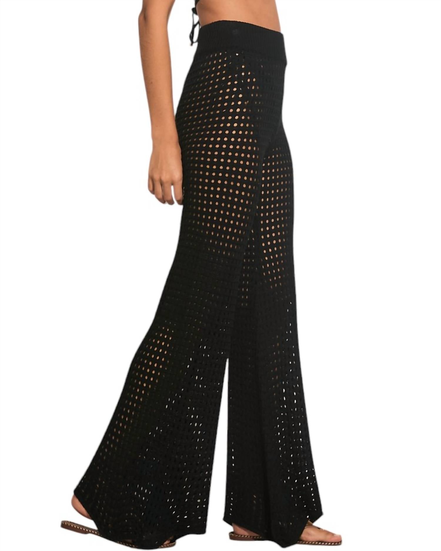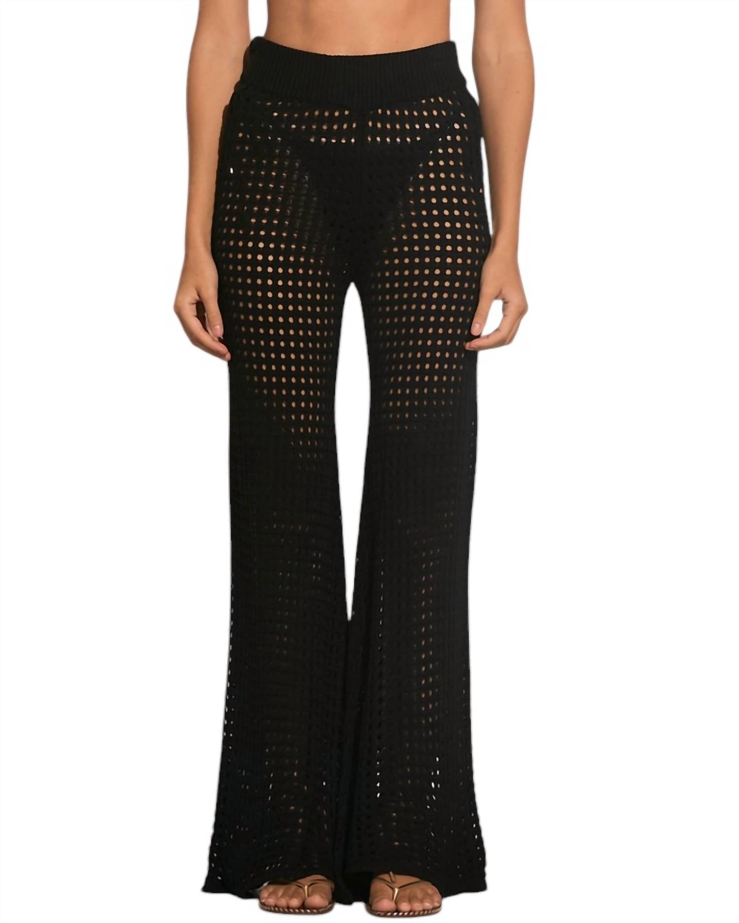 Slightly flared pants are all the rage right now and these are no exception. Pair these with your favorite tee for a more casual look, or with your favorite button-up blouse for an evening out. Introducing the All Crochet Pants by ELAN, a chic blend of style and comfort. These flared-leg pants come in a sleek black hue, making them a versatile addition to any wardrobe. Crafted from durable acrylic material, they offer a stylish patterned design. With a high-rise waist, pull-on closure, and no pockets, these pants provide a seamless and polished look for any occasion.