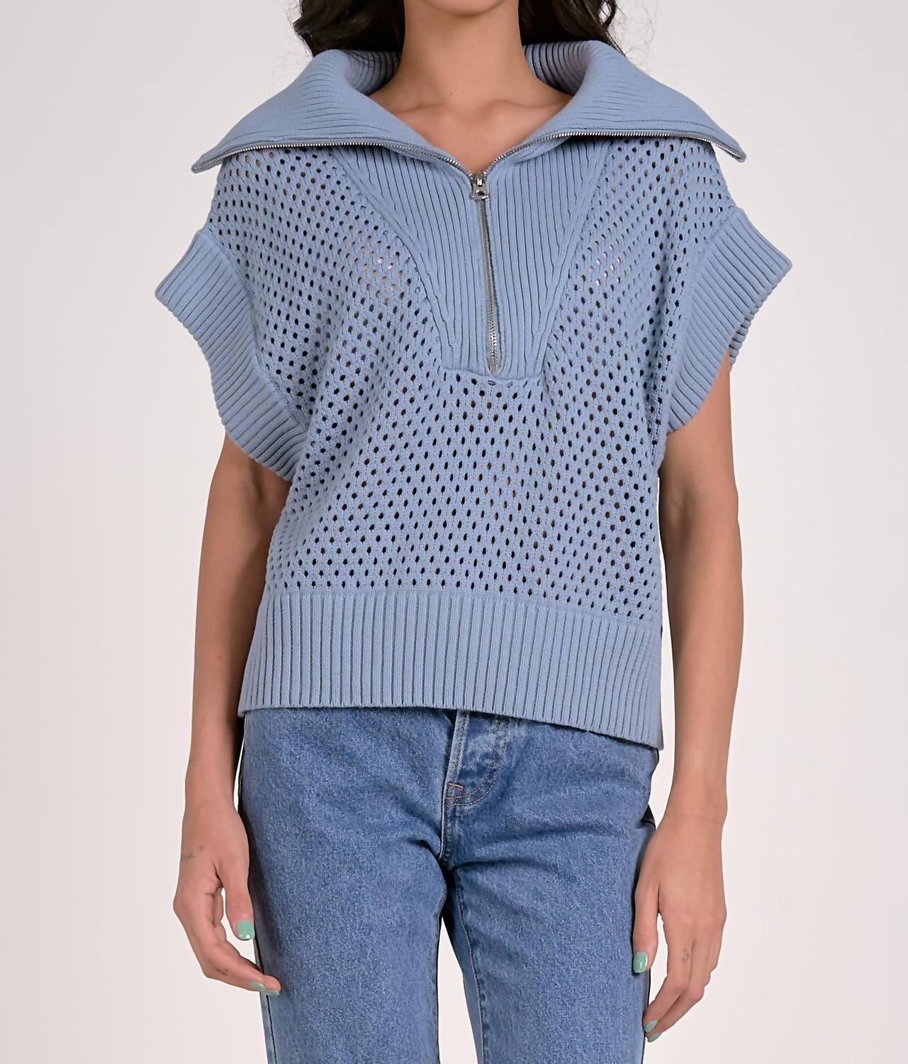 You'll be reaching for this comfy and classic v-neck sweater all season long. The Allie Zip Up Sweater by ELAN is your go-to minimalist piece for a spring dinner party. With its short sleeves and oversized collar, this white V-neck sweater is crafted from 100% cotton for ultimate comfort. The design features a 1/4 zip closure for a chic and modern touch. Care for this textured piece by dry cleaning it to maintain its elegant look.