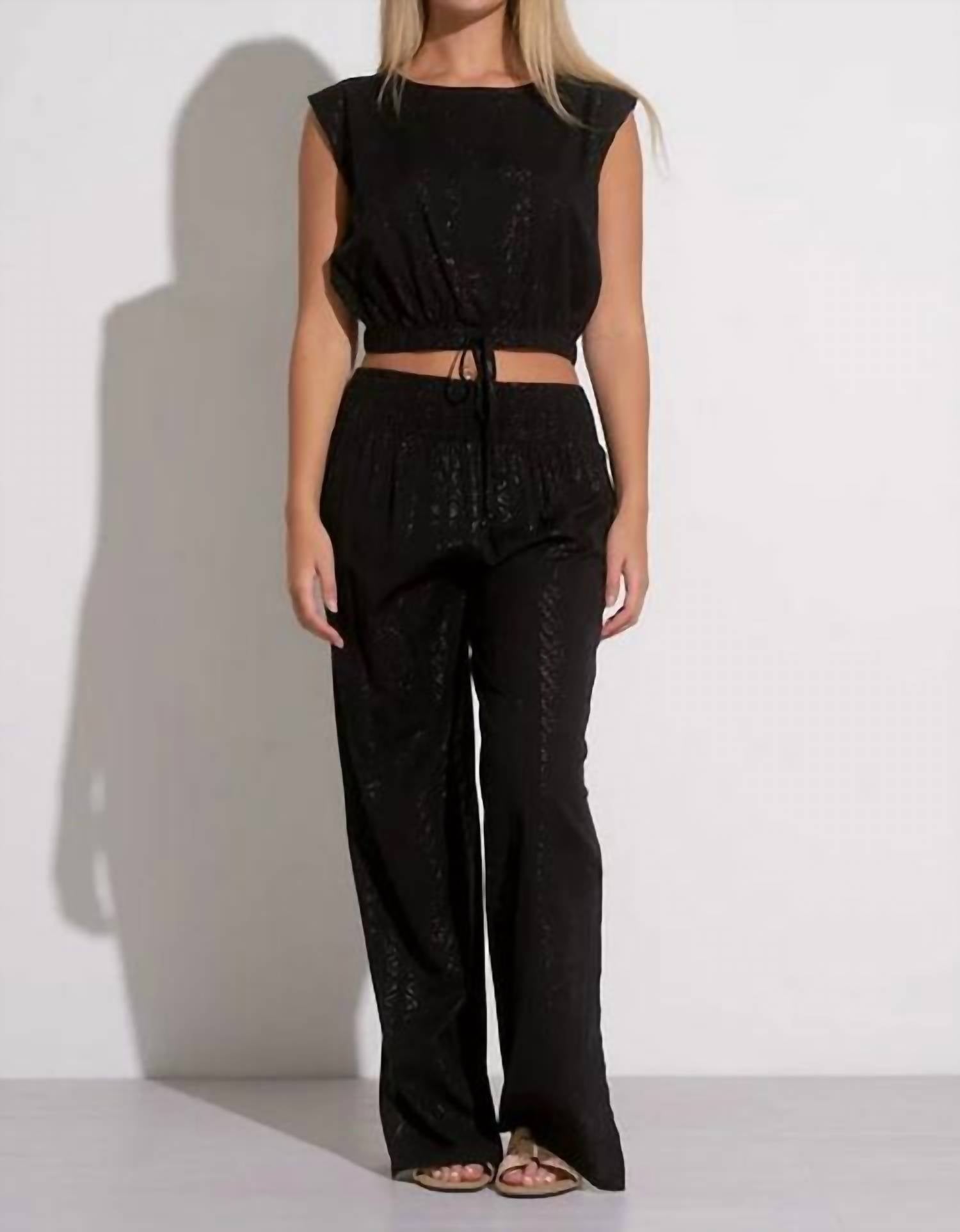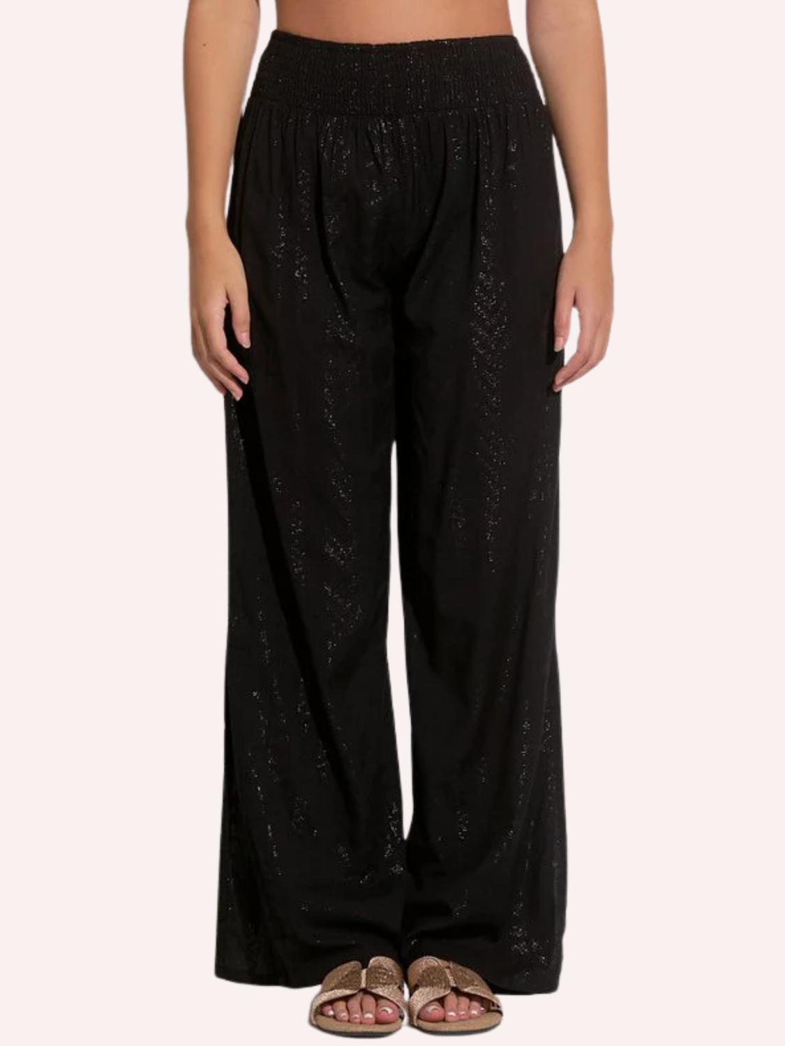 Elevate your spring wardrobe with the Arrow Print Pants by ELAN, designed in a sleek solid black. These wide-leg pants offer a relaxed fit, making them perfect for a vacation or casual outing. Featuring a pull-on closure, these pants are as effortless as they are stylish. Care instructions include machine wash and tumble dry, ensuring easy maintenance.
