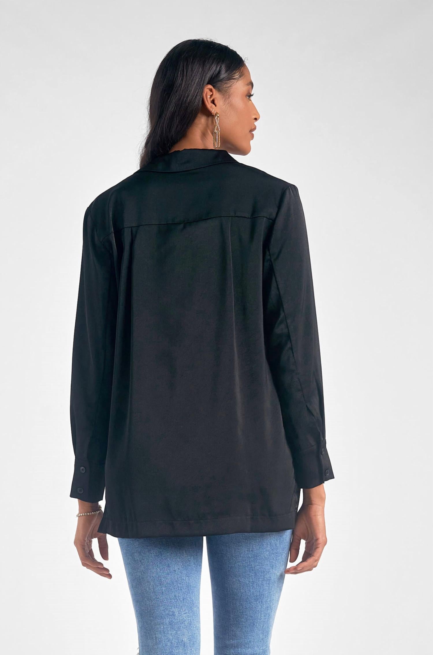 A classic button down shirt that will never go out of style. Features collar, button down front, long sleeves with button cuffs, tunic length with side slits. 100% Polyester. Hand Wash Cold.