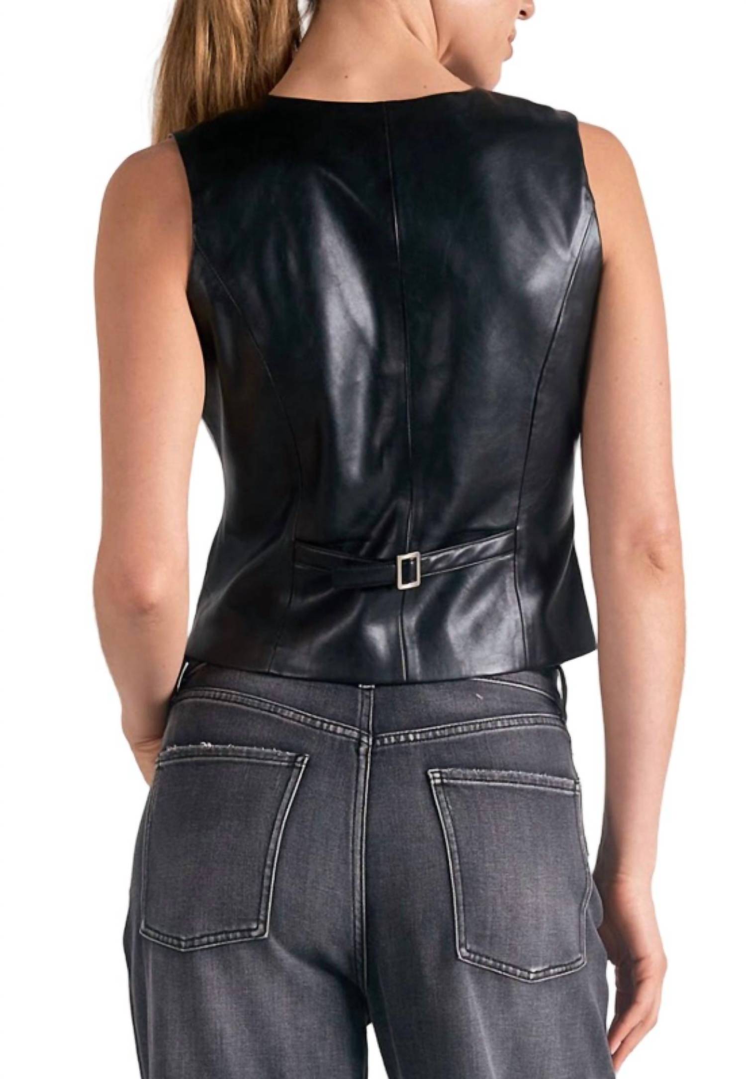 That extra layering piece you didn't know you needed!This Button Front Vest is crafted from vegan leather with a V-neckline, button closure, sleeveless design, and practical pockets, offering a polished and versatile look.