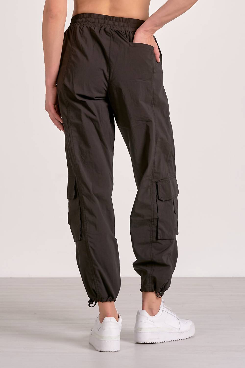 The perfect pant for running around town and looking cool while doing it. Discover the ELAN Cargo Pants, a stylish choice for any casual day out. Designed with a regular fit and tapered legs, these black cotton pants offer comfort and versatility. The mid-rise waist and pull-on closure make them perfect for summer streetwear, while multiple pockets add practicality. Care for them easily with machine washing and tumble drying.