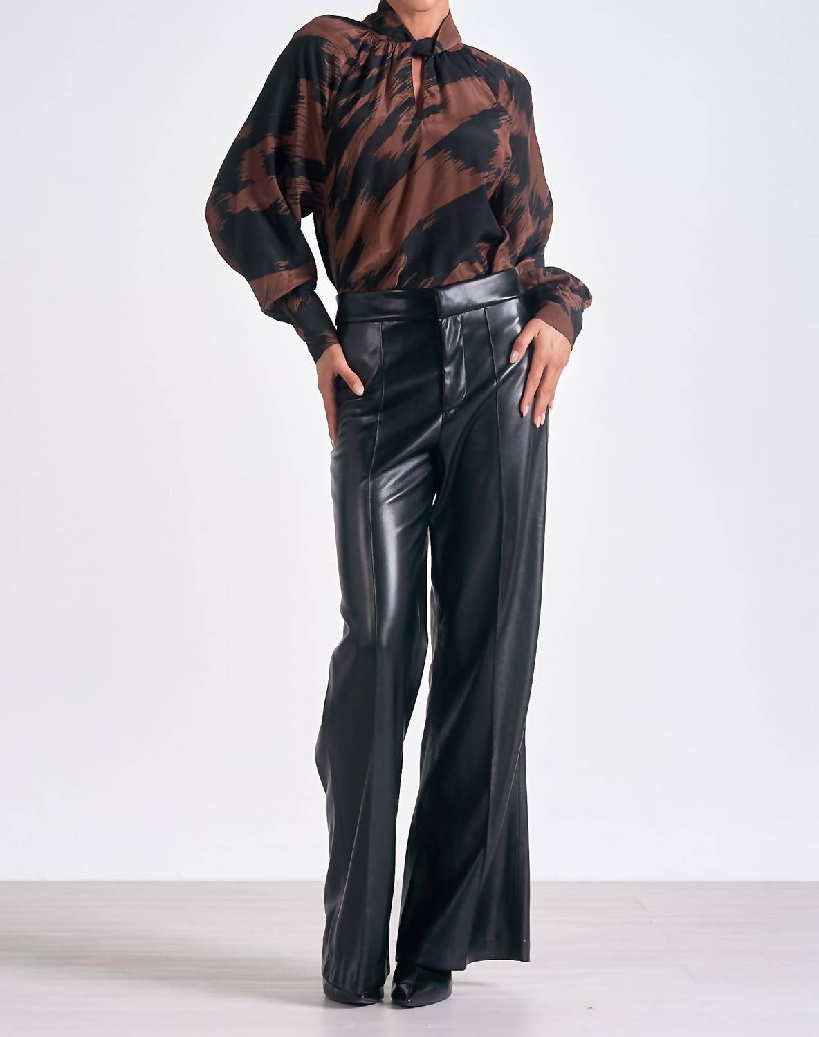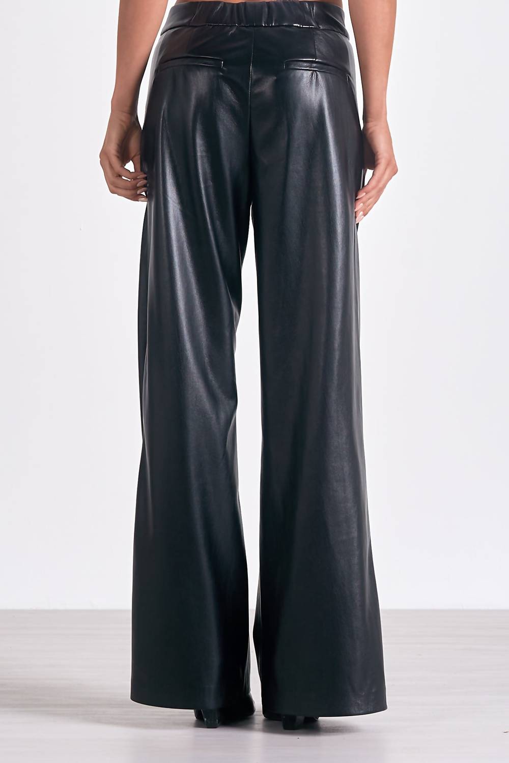 Elevate your wardrobe with the Faux Leather Wide Leg Trousers by ELAN, perfect for a sleek, contemporary look. These black wide-leg trousers are crafted from 100% polyester faux leather for a stylish yet comfortable fit. Featuring a zip and button closure, they provide functionality without compromising on trend. Care for these trousers by hand washing and line drying to maintain their premium appearance.