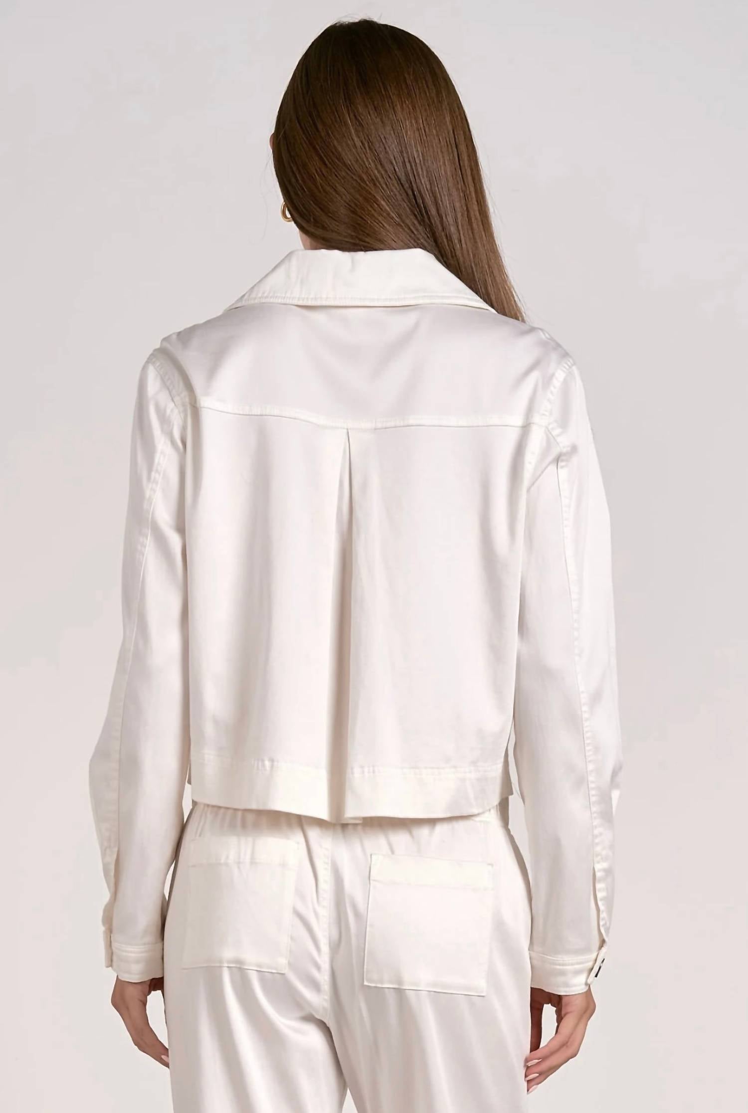 Introducing the Ira Jacket by ELAN, a sophisticated piece perfect for the minimalist wardrobe. This solid white jean jacket features long sleeves and a collar neckline, offering style and versatility for a dinner party or casual outing. Crafted from a blend of 60% Tencel, 37% cotton, and 3% spandex, it ensures comfort and a refined fit. Closure: Front button closure.