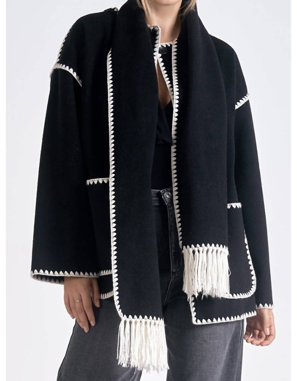 Elan - Jacket with Top Stitch and Removeable Scarf