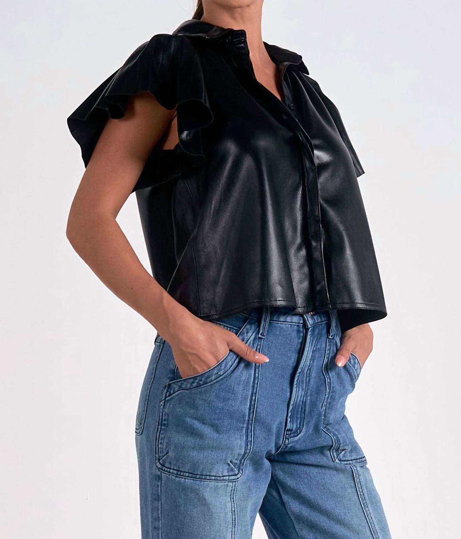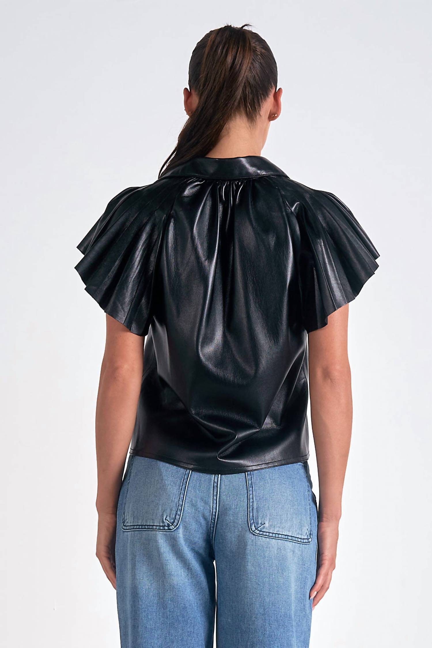 Elan - Leather Flutter Sleeve Top