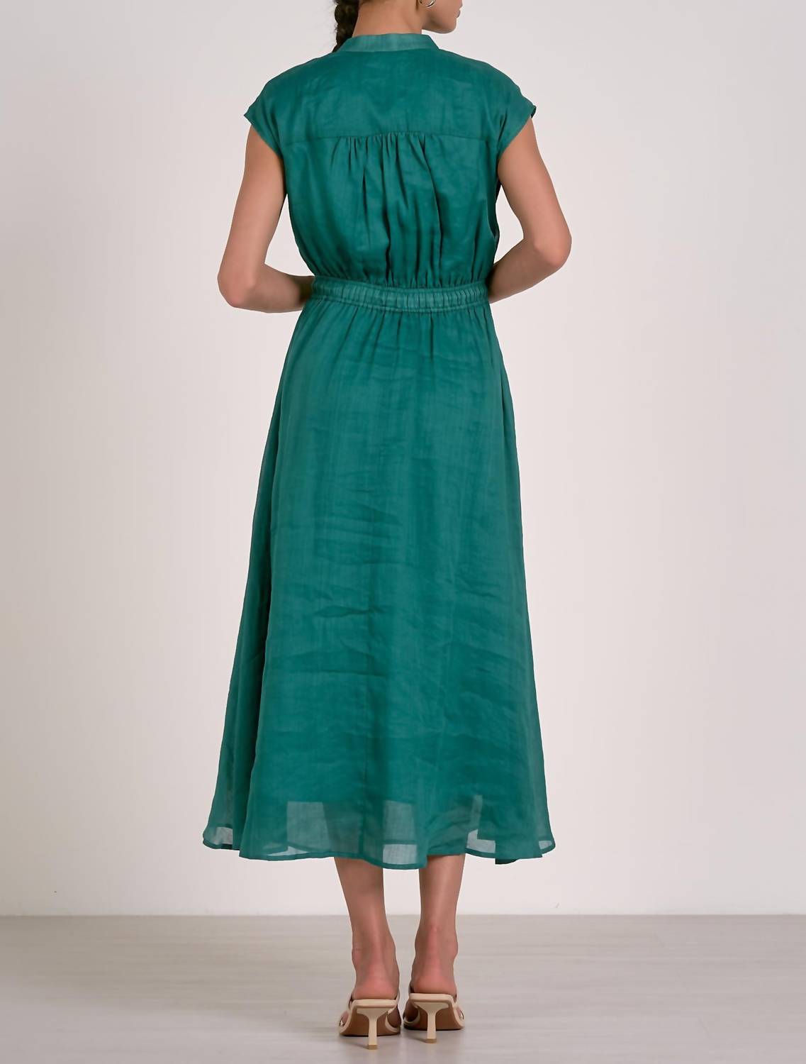 The perfect length dress does exist. Introducing the Midi Short Sleeve Tie Waist Dress by ELAN, a minimalist emerald green piece perfect for any occasion. With its cap sleeves and fit and flare silhouette, this dress offers a flattering fit, complete with a practical tie waist. Closure: Button closure. Care: Machine wash. Expertly designed for spring and great for St. Patrick's Day events or church gatherings.
