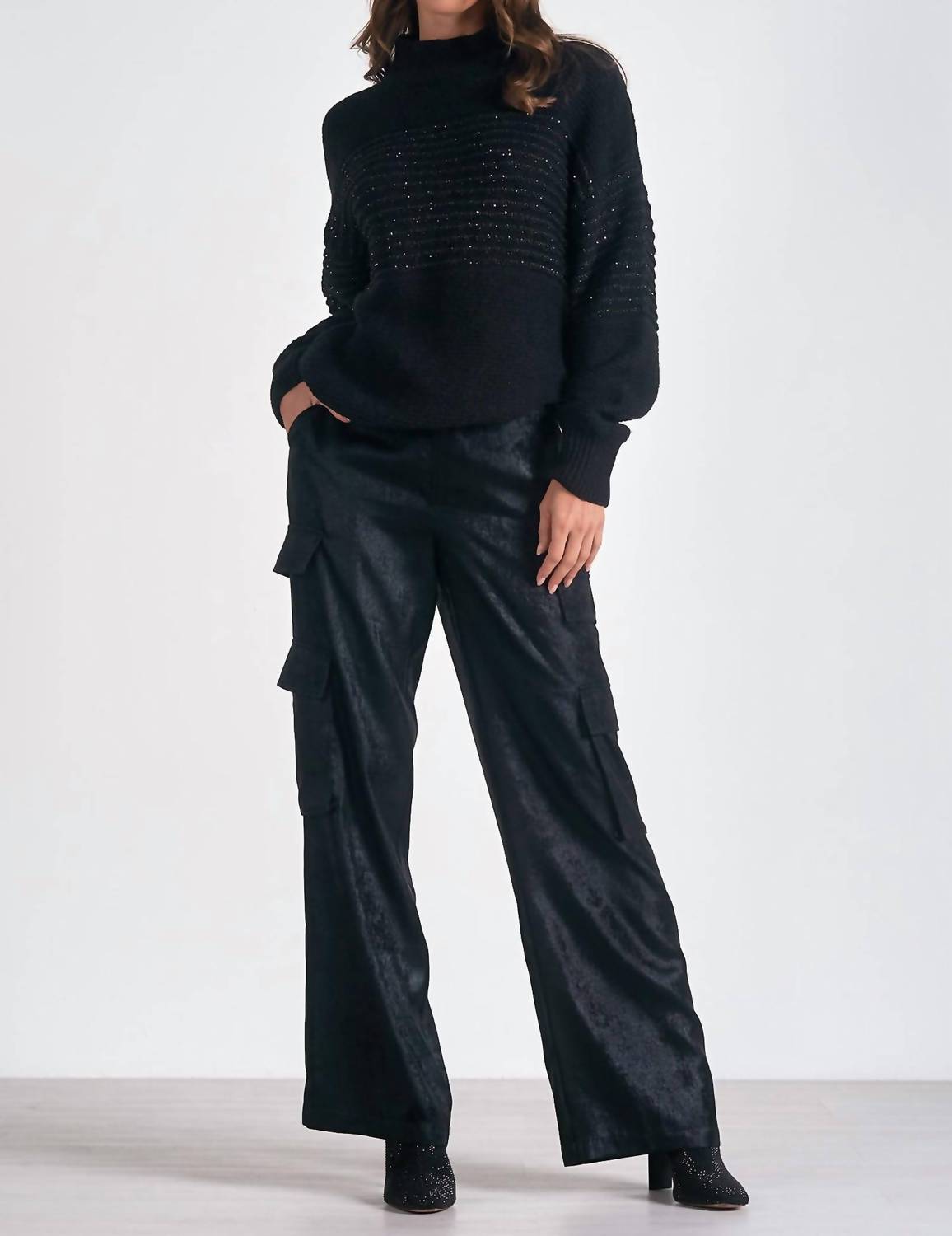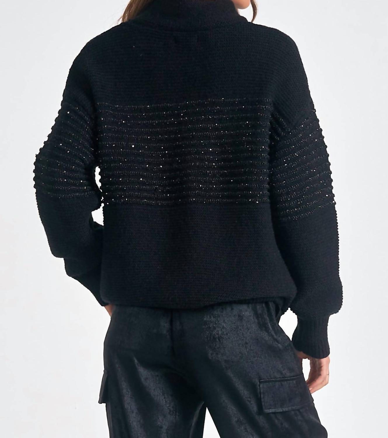 Experience the perfect blend of comfort and style with this trendy crew neck sweater, designed to effortlessly elevate your wardrobe. Pair it with your favorite denim and loafers for the perfect look. The ELAN Mockneck Sequin Sweater is the perfect addition to your fall wardrobe, blending elegance with comfort for any vacation occasion. Crafted in textured black fabric, it features long sleeves and a chic mockneck design. Composition includes 40% Acrylic, 30% Nylon, 15% Wool, 8% Mohair, and 7% Polyester. Closure: Pull on.
