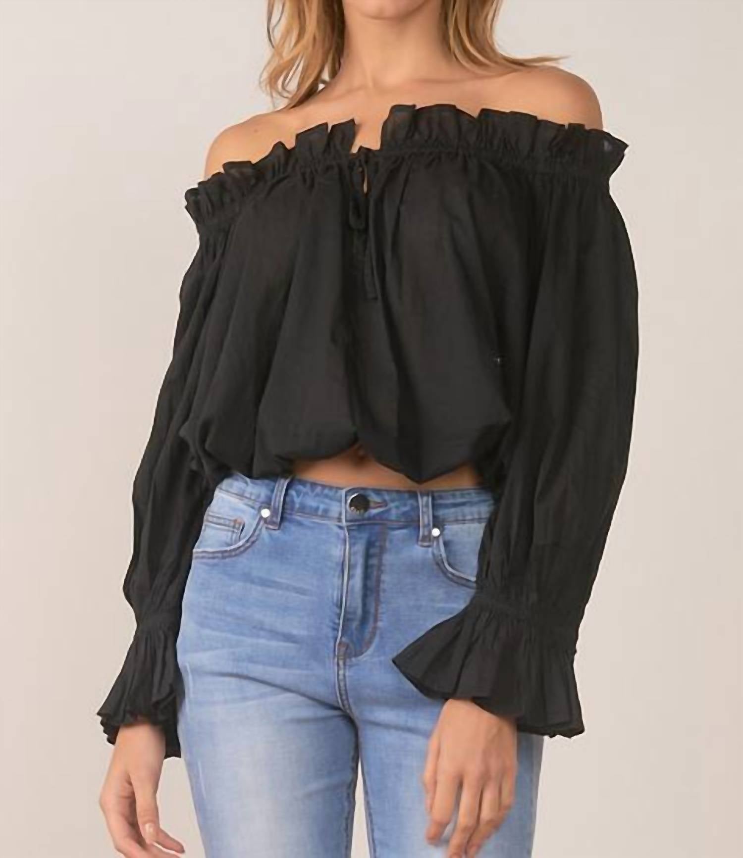 Show a little skin in this cute and casual crop top. 96% Rayon+ 4% Spandex. Off shoulder ruffles. Hand Wash or Machine Wash,Do Not Bleach.