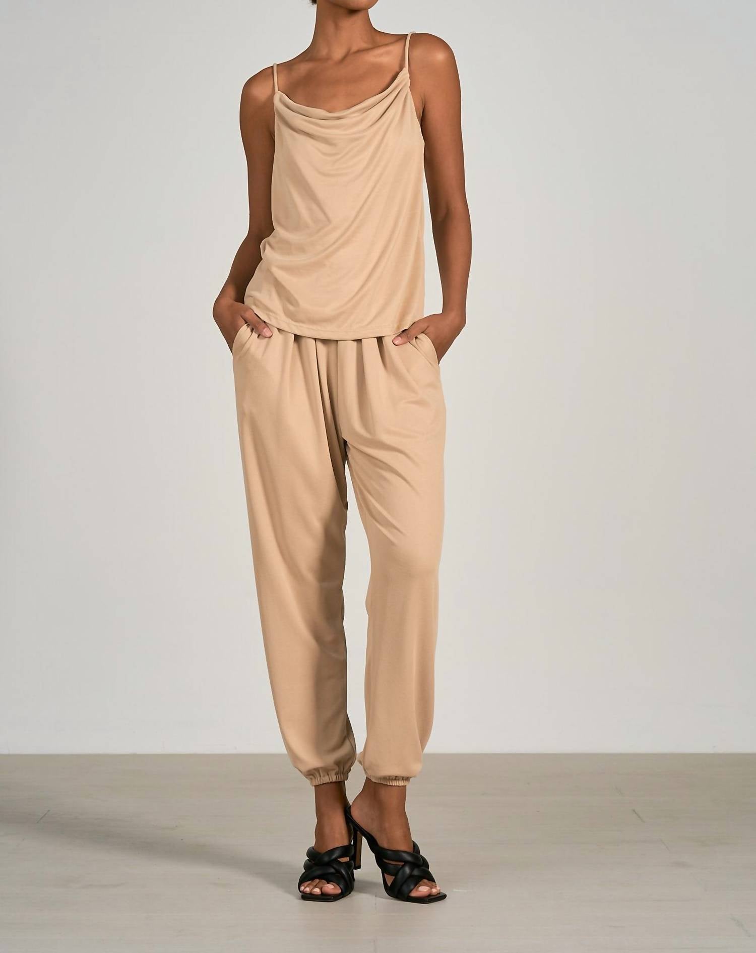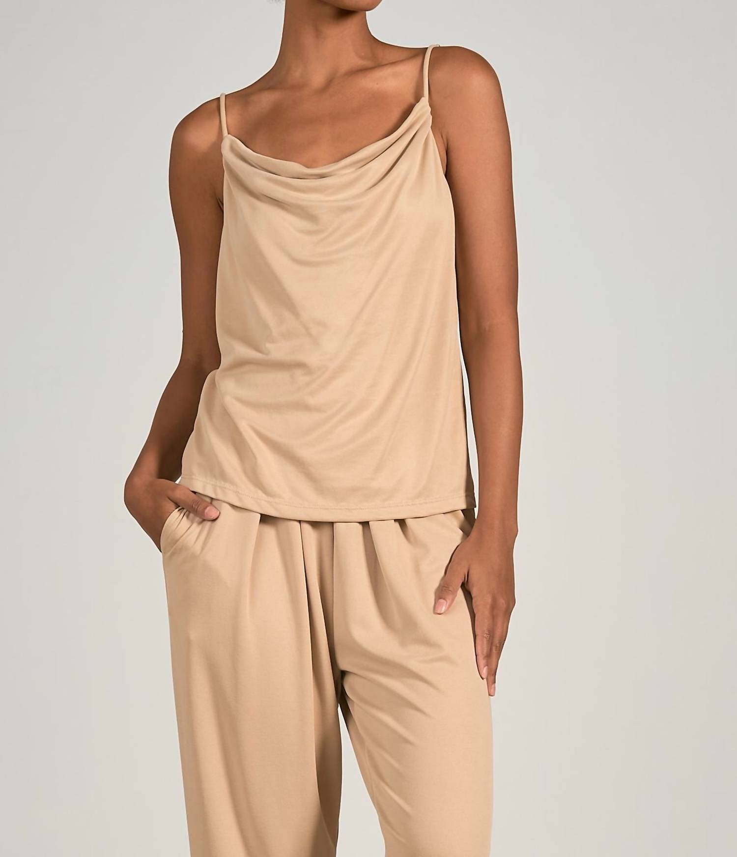 Fit, fabric and functionality. This tank top checks all the boxes. Features a drape front and thin straps. True to size. Dry clean only.