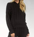 57% Acrylic, 29% Polyester, 14% Nylon. Soft cable knit hooded sweater. Features long sleeves. Hood. Self tie. Relaxed fit in bodice with banded hemline. Hand wash cold, dry flat. Fits true to size.