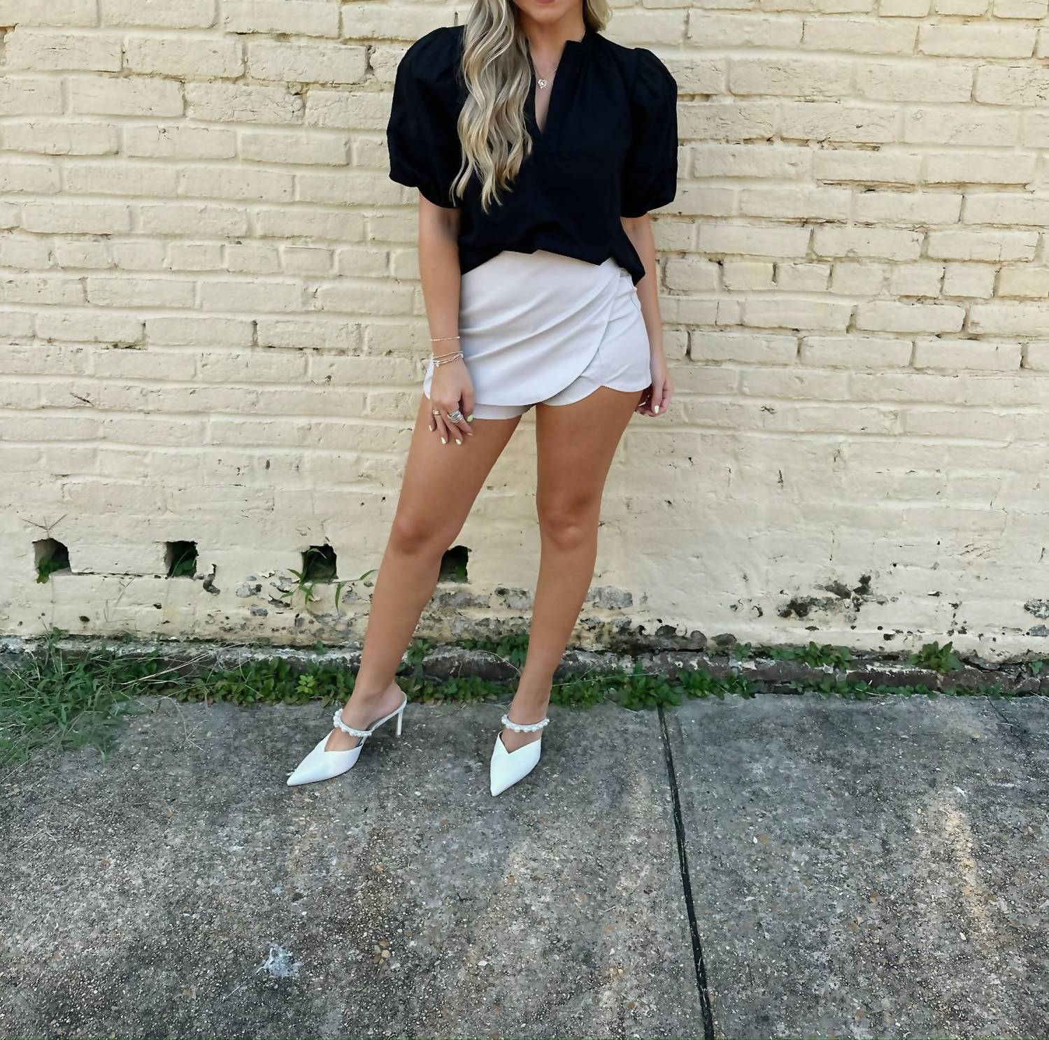 Discover the V-neck Top With Bubble Sleeve by ELAN, a chic addition to your wardrobe. Designed in sleek black, this top features stylish short bubble sleeves that offer a modern twist on a classic silhouette. Closure: Pull-on. Perfect for adding sophistication to any ensemble, this piece plays well with both casual and formal pieces.