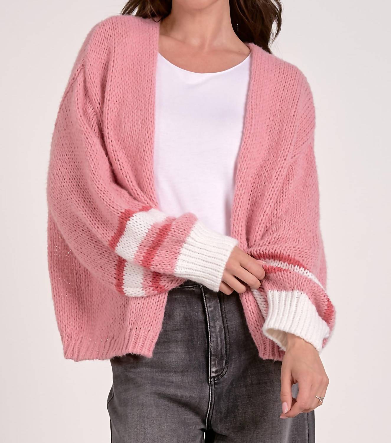 A classic fit that works just as good buttoned as it does left open. The Varsity Open Front Sweater Cardigan by ELAN offers a blend of comfort and style, perfect for your seasonal wardrobe. Featuring long, striped balloon sleeves and a chic open-front design, this textured cardigan is crafted from 100% polyester. Closure is effortless with a convenient pull-on style, and care is simple with machine wash and tumble dry instructions. Ideal for a dinner party or Thanksgiving gathering, this minimalist piece adds a pop of pink to any outfit.
