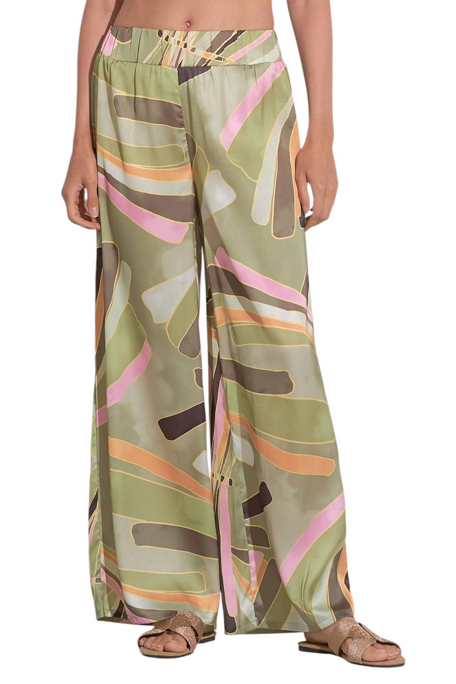 Introducing the Women's Elastic Pants by ELAN, designed to fuse comfort with a stylish edge. These wide-leg pants showcase a trendy green manila camouflage pattern. Crafted from premium polyester, they offer a sleek look with the convenience of a pull-on closure. Additional features include a practical mid-rise waist and pockets, providing both functionality and flair for everyday wear.