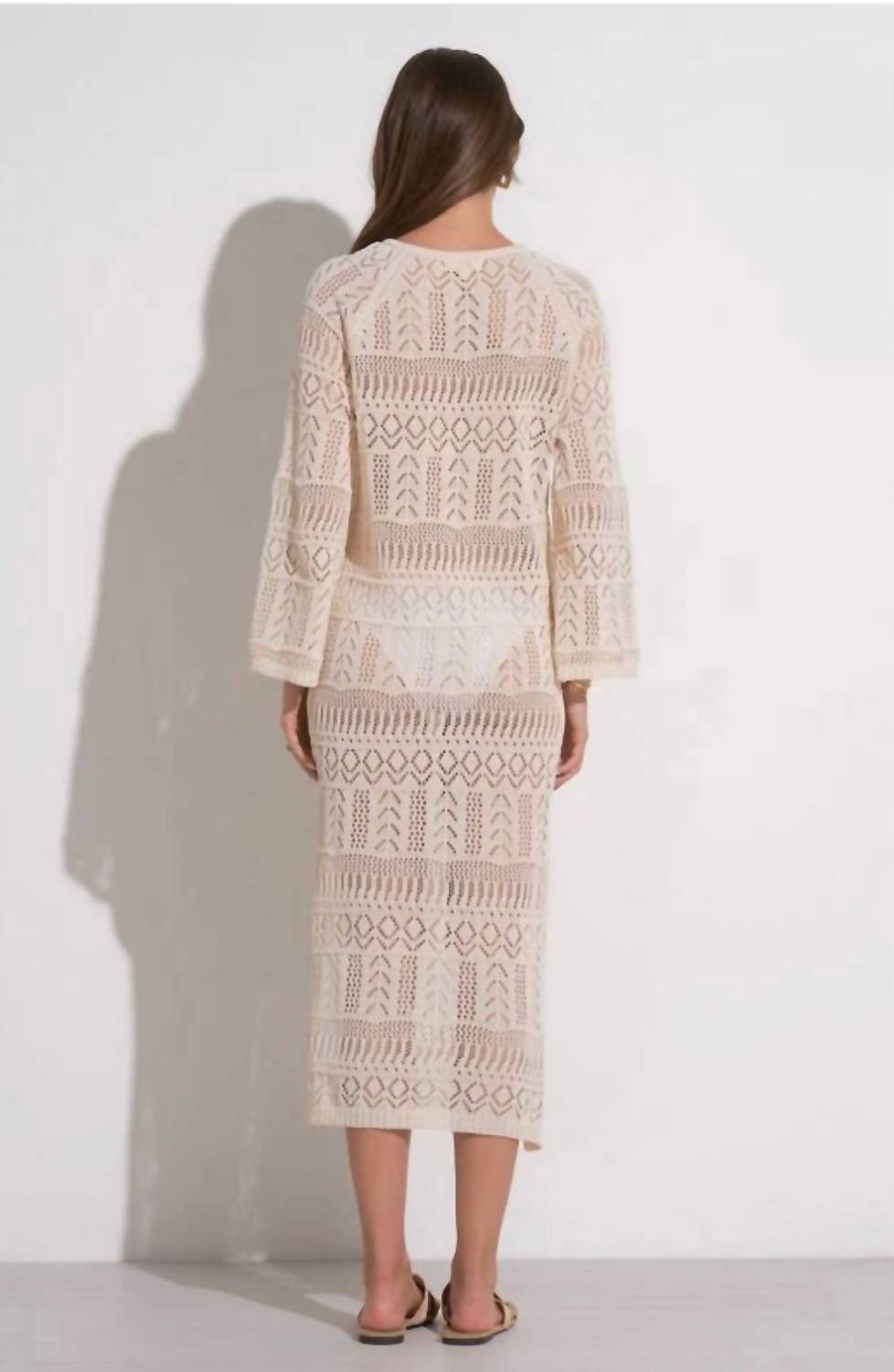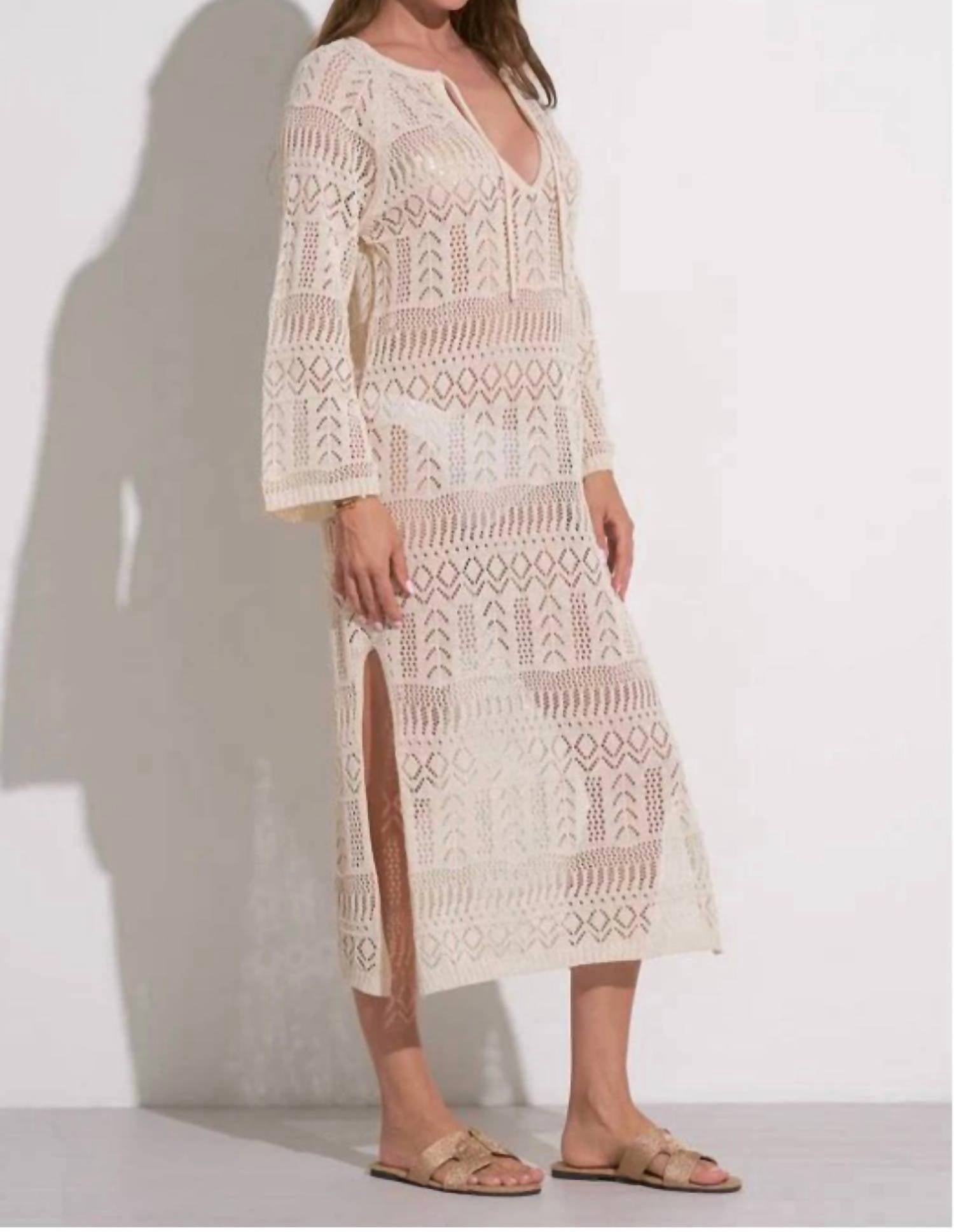 You're go-to coverup for pool parties, beach days and long weekends. Discover the ELAN Women's Maldives Kaftan Cover Up, an exquisite fusion of elegance and comfort perfect for your next getaway. This boho chic piece features long sleeves and a V-neckline, crafted from a soft cotton blend of 70% polyester and 30% cotton. Embrace effortless style with its pull-on closure and textured crochet pattern, ideal for layering over your swimwear. Care: Hand wash. Perfect for adding refined sophistication to your summer vacation wardrobe.