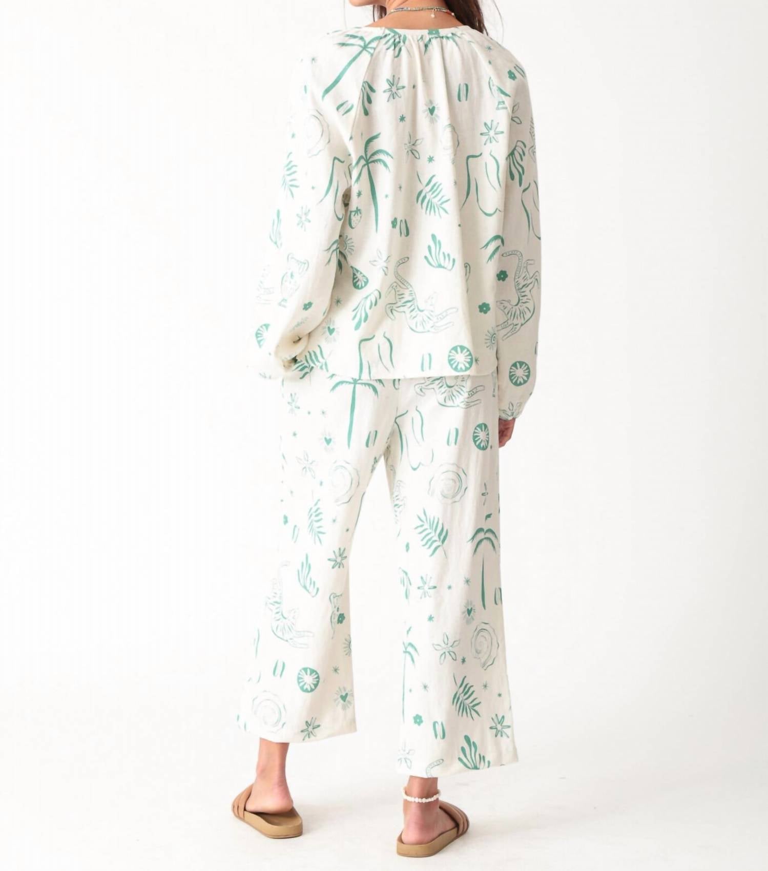 Elevate your wardrobe with the Meridian Tie Top by Electric & Rose, a chic piece featuring a flattering V-neckline and long sleeves in a minimalist graphic pattern. Crafted from a comfortable blend of 55% Linen and 45% Rayon, this top is perfect for a relaxed yet sophisticated look. Available in a unique Ivory/Lagoon color-way, it's designed without pockets for a sleek silhouette. Care is easy with machine wash cold and lay flat to dry instructions, ensuring your new favorite stays in great condition. Model is 5'9" and wearing size small.