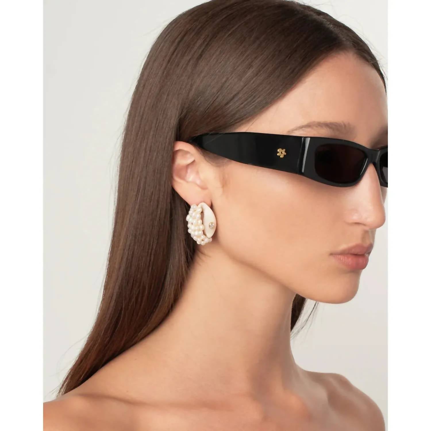 Classic earrings that will take you from season to season. Introducing the Congo Pearl Earrings by Éliou, where elegance meets natural charm. Handcrafted with meticulous care, these earrings feature freshwater pearls delicately wired to natural cowrie shells, accented by a sparkling cubic zirconia bezel. Perfect for any occasion, these unique pieces are a testament to individuality. For longevity, rinse with fresh water after swimming, avoid exposure to chlorine, and keep away from cleaning products and extreme heat.