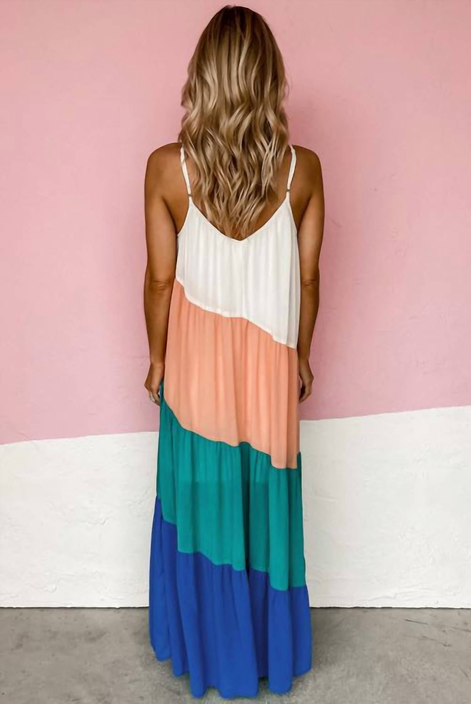 Capture effortless boho chic style with the Colorblock V-neck Dress from Entro, ideal for your summer vacation. With its spaghetti straps and elegant V-neckline, this shift maxi dress offers both comfort and trendiness. The dress is lined for a smooth silhouette and features a pull-on closure for easy wearing. Composition: Multi-patterned fabric. Care: Hand wash and line dry.