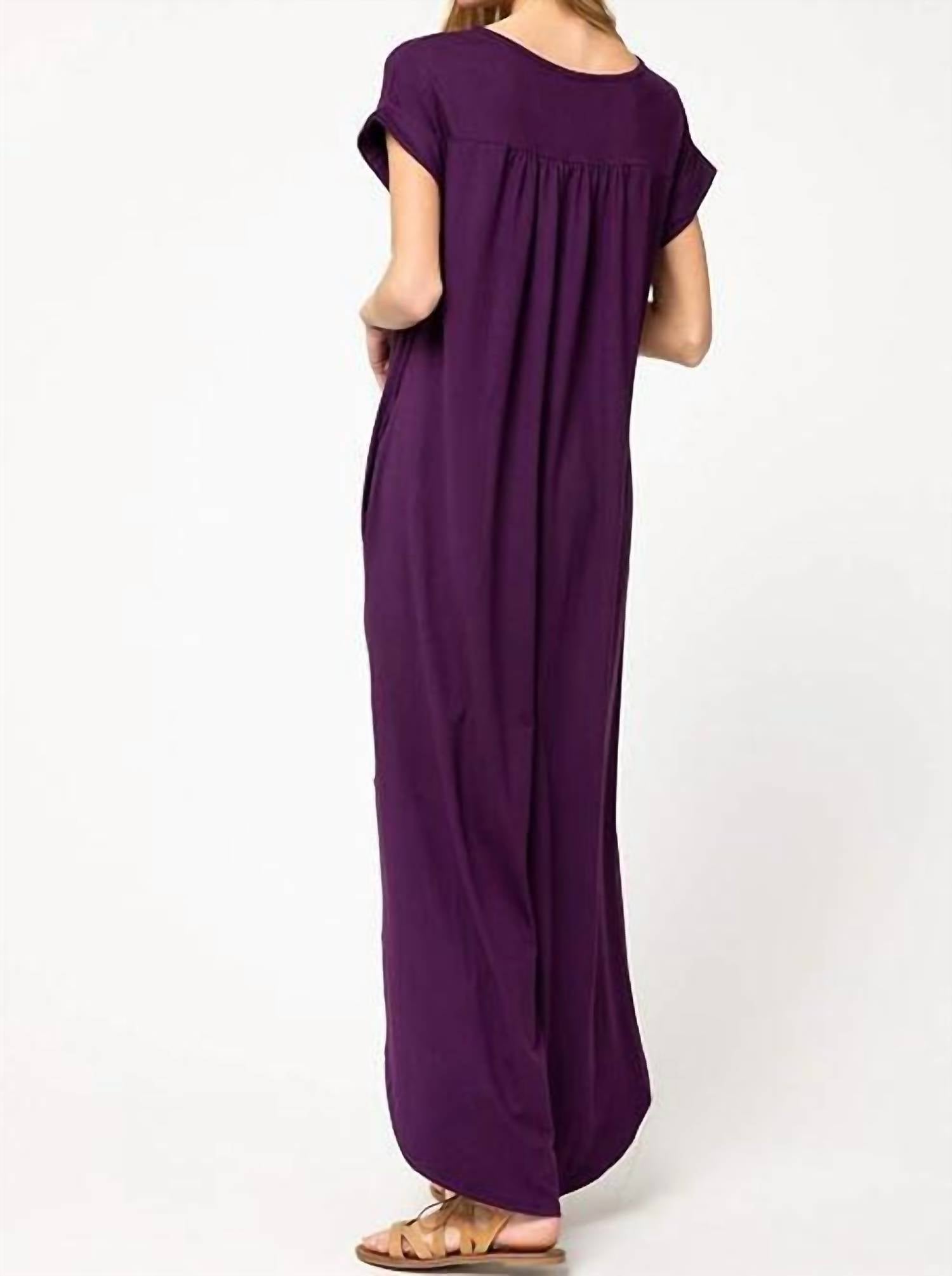 Embrace style and comfort with the Curvy Exclusive Knit Maxi Dress by Entro, available in a rich Plum hue. Featuring short rolled sleeves and a flattering V-neckline, this dress is crafted from 94% polyester and 6% spandex for a comfortable fit. The pull-on design adds to its ease of wear, while side pockets help with convenience. Made for the modern woman, this maxi dress is ideal for spring, providing a comfortable, relaxed silhouette. Care: Hand wash cold, line dry. Model wears size XL and stands at 5'9".