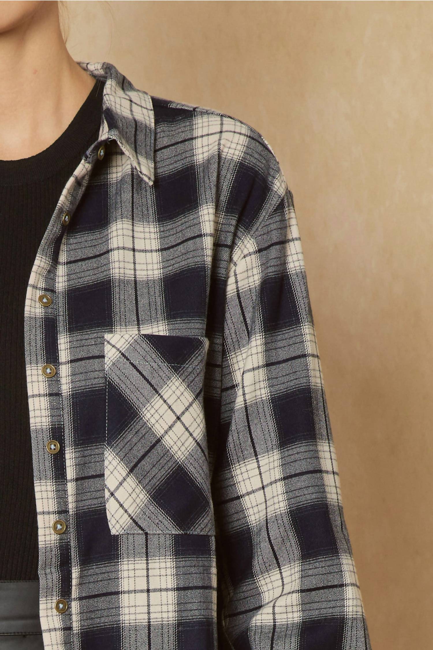 Perfectly tailored and soft to the touch. This denim and plaid top features a classic collar. Button-down front. Long sleeves with button closures at the wrist. Chest pockets. Rounded hemline. A-line silhouette. Small Bust 42" Length 29". Medium Bust 44" Length 29". Large Bust 46" Length 29". XL Bust 50" Length 31". 1X Bust 52" Length 31". 2X Bust 54" Length 31". 100% Cotton. No stretch. Hand wash or dry clean.