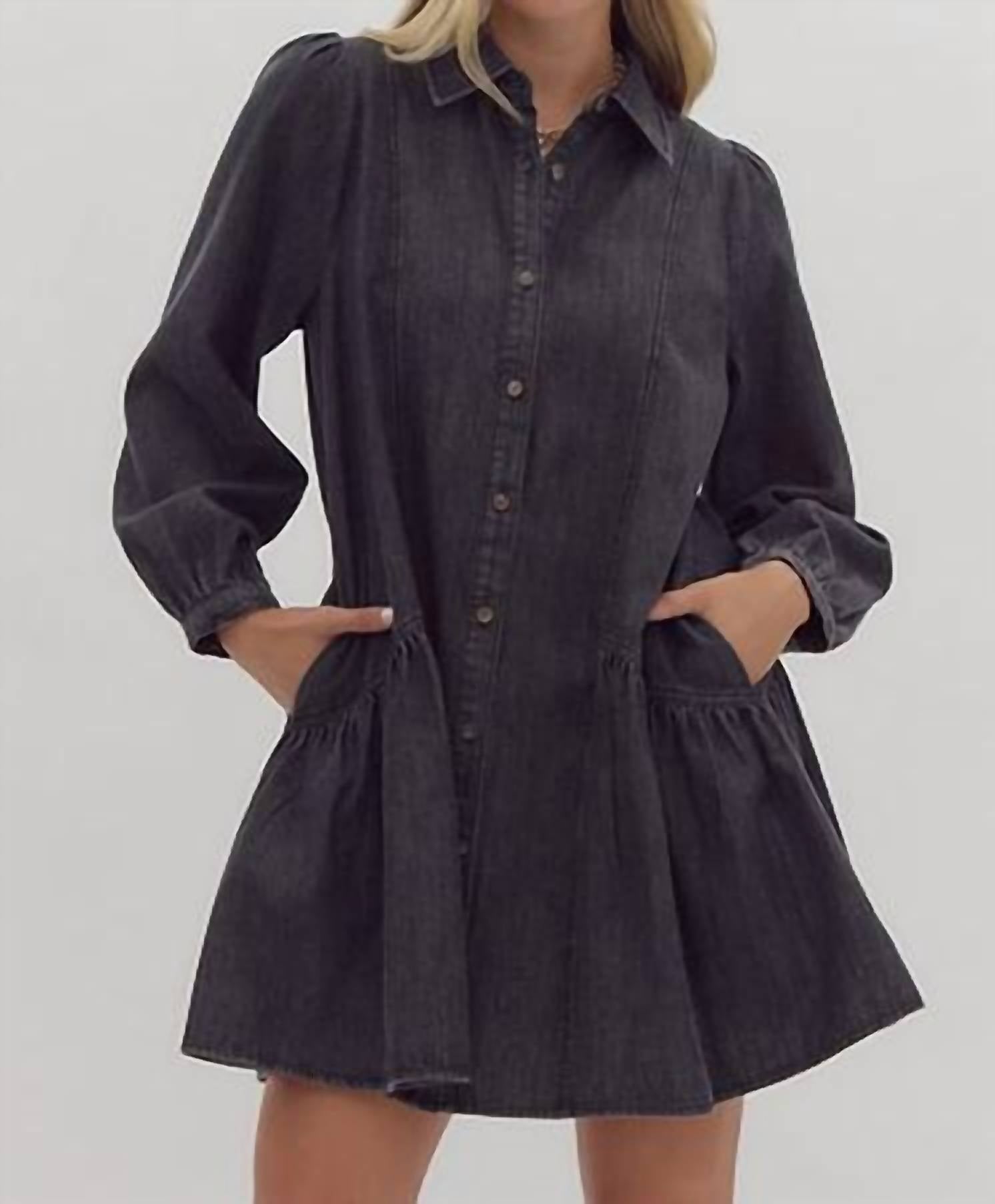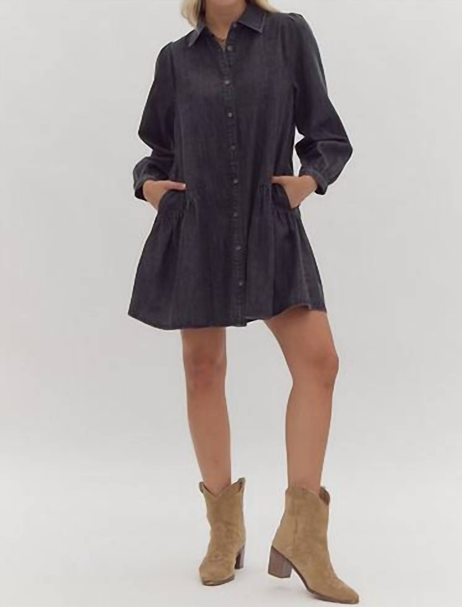 Cute and comfortable, this long sleeve dress has it all. Chic and versatile piece perfect for any evening event. With its long sleeves and collared style. Crafted from a blend of 85% cotton and 15% polyester for a lightweight feel. Button closure and side pockets add practicality to this on-trend 90s fashion silhouette. Machine wash, tumble dry. Model is 5'8.5" and wearing size Small.