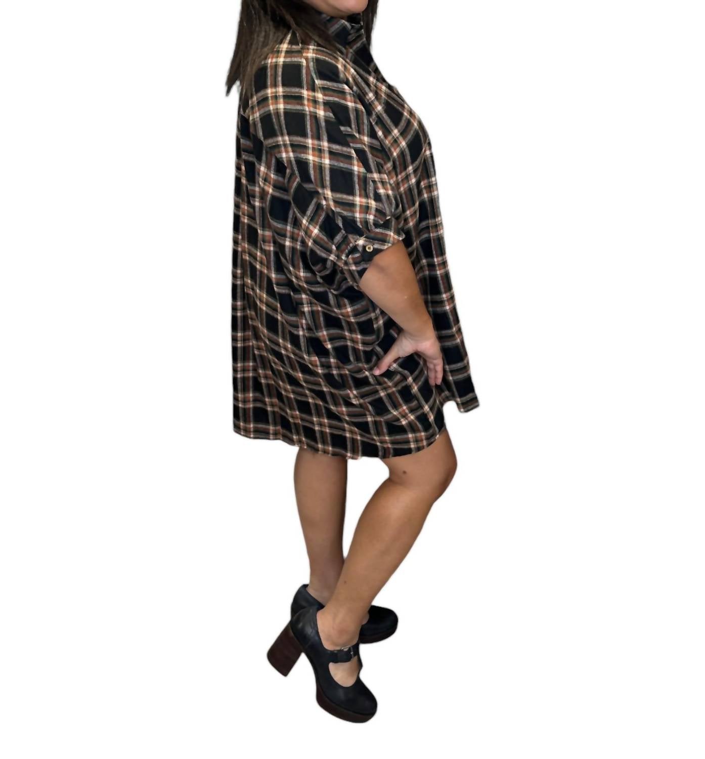 The perfect mini dress for those warmer months. Cozy plaid flannel design perfect for cooler months. Oversized, relaxed fit ideal for layering or wearing solo. 60% Polyester, 40% Cotton.