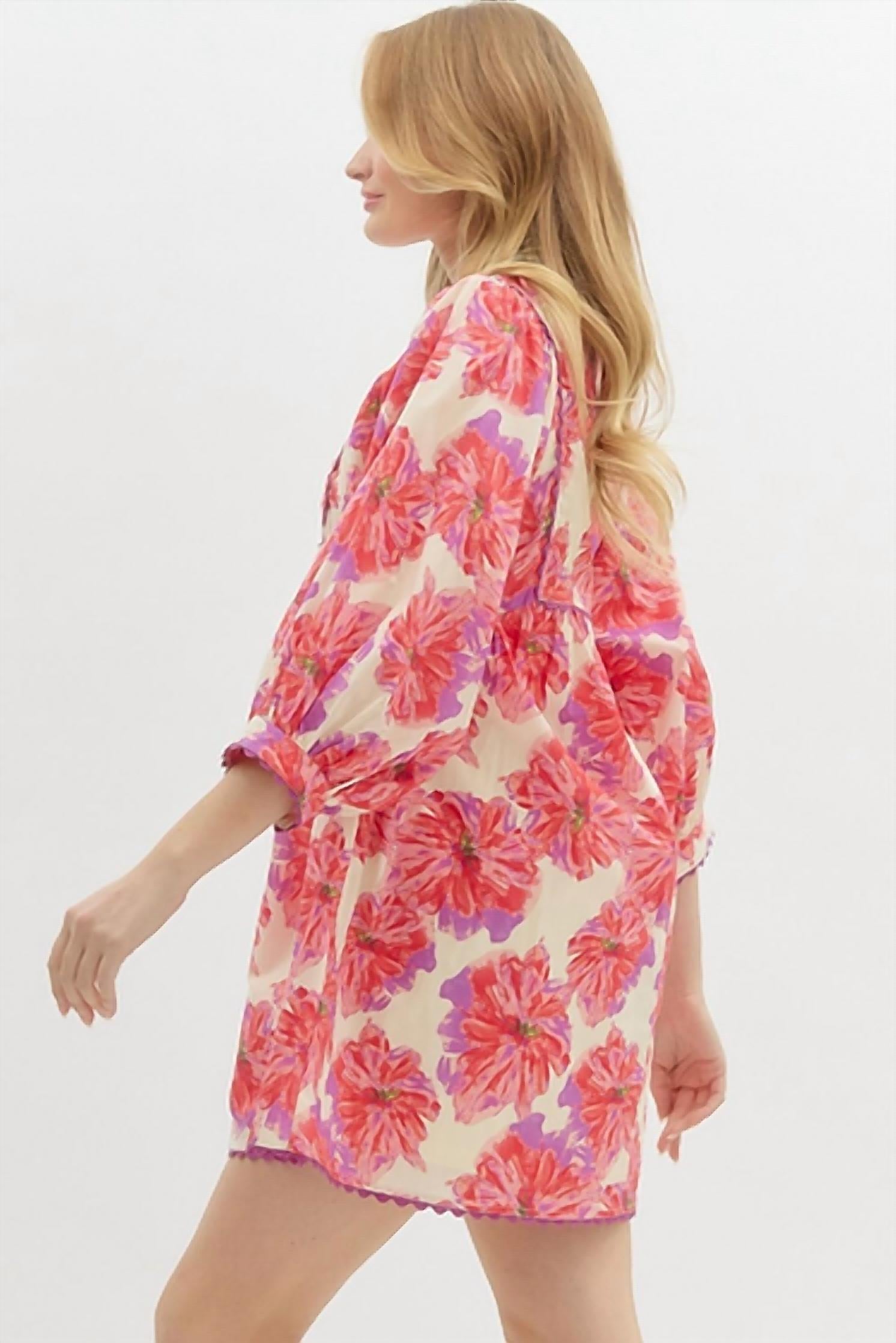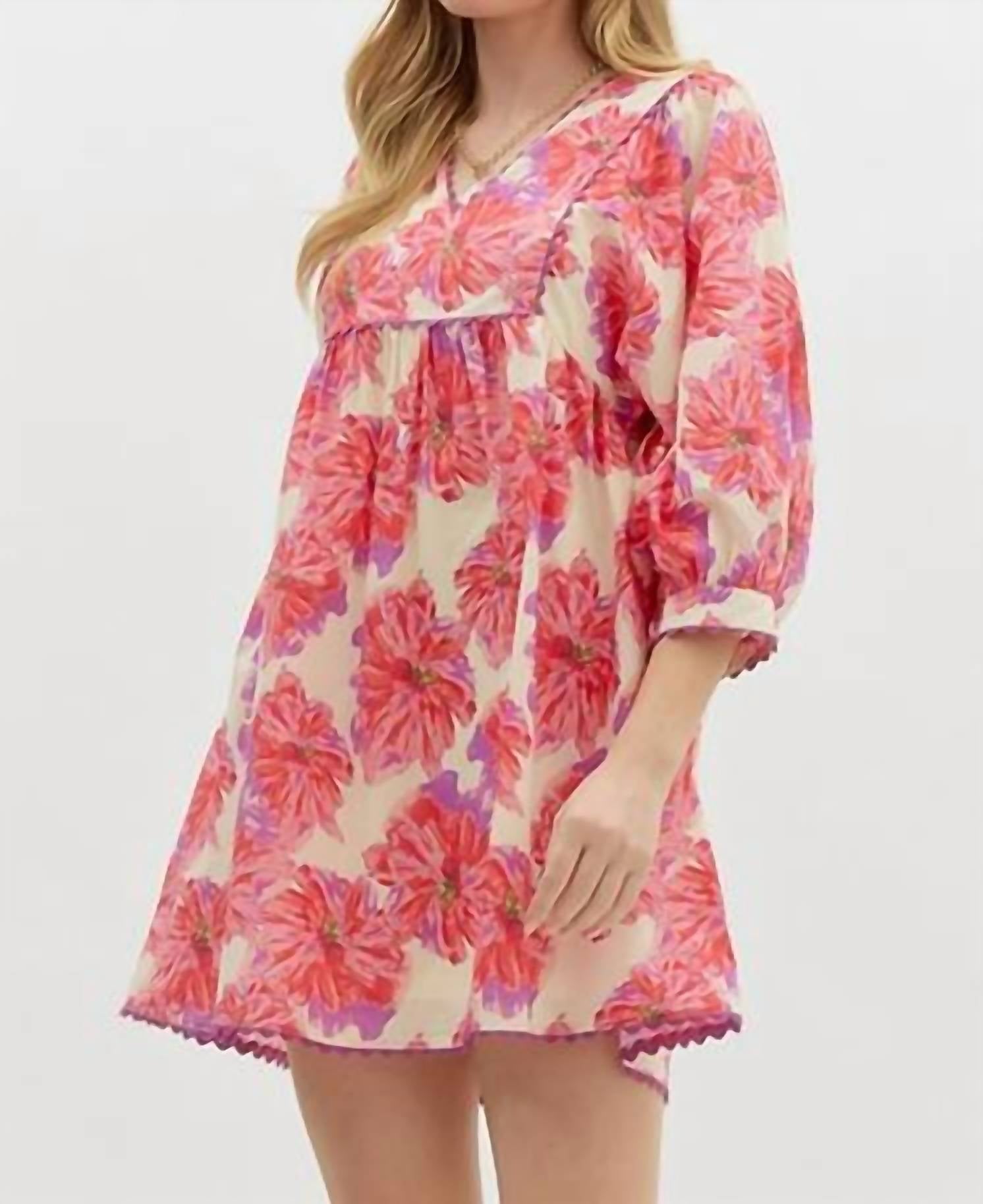 Entro - Floral 3/4 Sleeve Babydoll Mini Dress