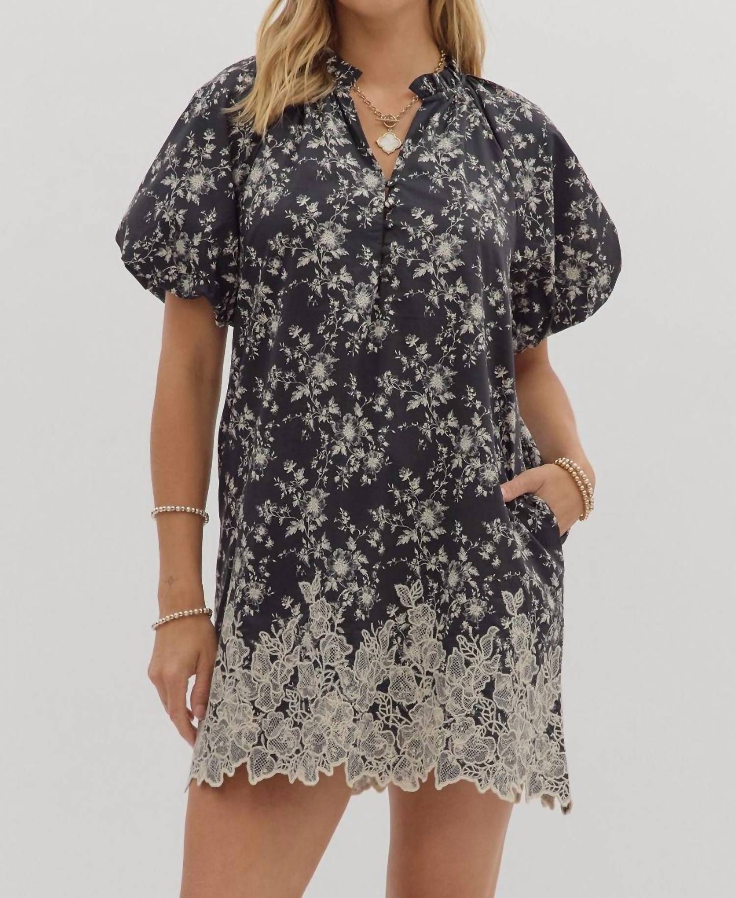 The kind of easy and flattering dress you'll be reaching for all season long. Embrace the boho-chic vibe with the Entro Floral Print Mini Dress, perfect for your summer wardrobe. This A-line dress comes in a sophisticated black color, showcasing a stunning floral pattern. It's made of polyester, featuring a V-neckline and convenient pull-on closure. Designed for women, it includes pockets for added practicality and is best cared for with a hand wash and line dry.