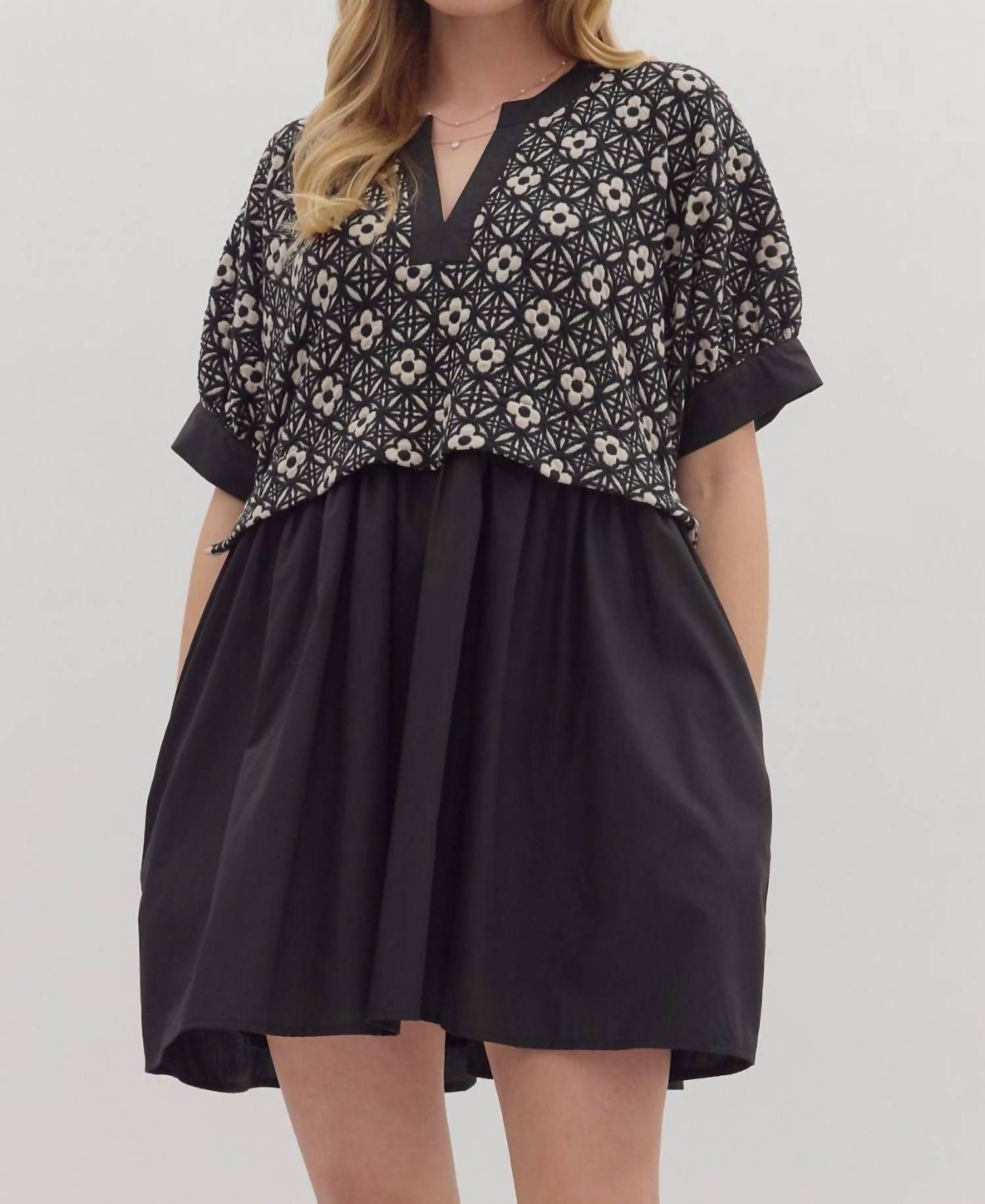 Introducing the Floral Textured Overlay Mini Dress by Entro, perfect for adding a touch of elegance to your wardrobe. This chic mini dress features short sleeves and a stylish V-neckline, with an attached textured floral embroidered overlay. Made from comfortable cotton, it comes with practical side pockets and an A-line silhouette, ideal for a minimalist summer look. Closure: Pull on. Care: Hand wash, lay flat to dry.