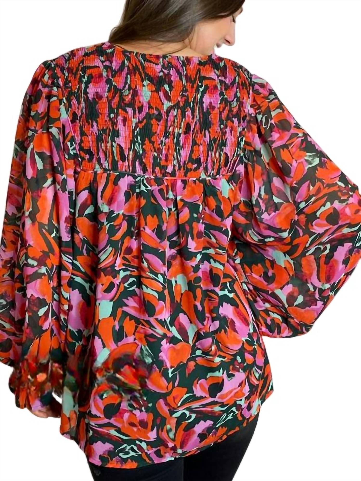Discover the Entro Floral Top, a vibrant blouse designed to elevate your wardrobe with its distinctive pattern in hunter green, red, and purple. Crafted from polyester, it features long puff sleeves and charming ruffled and shirred details, offering a flattering silhouette and romantic vibe. The V-neckline enhances its complementing fit while the pull-on closure ensures a seamless, comfortable wear. For longevity, hand wash and lay flat to dry.