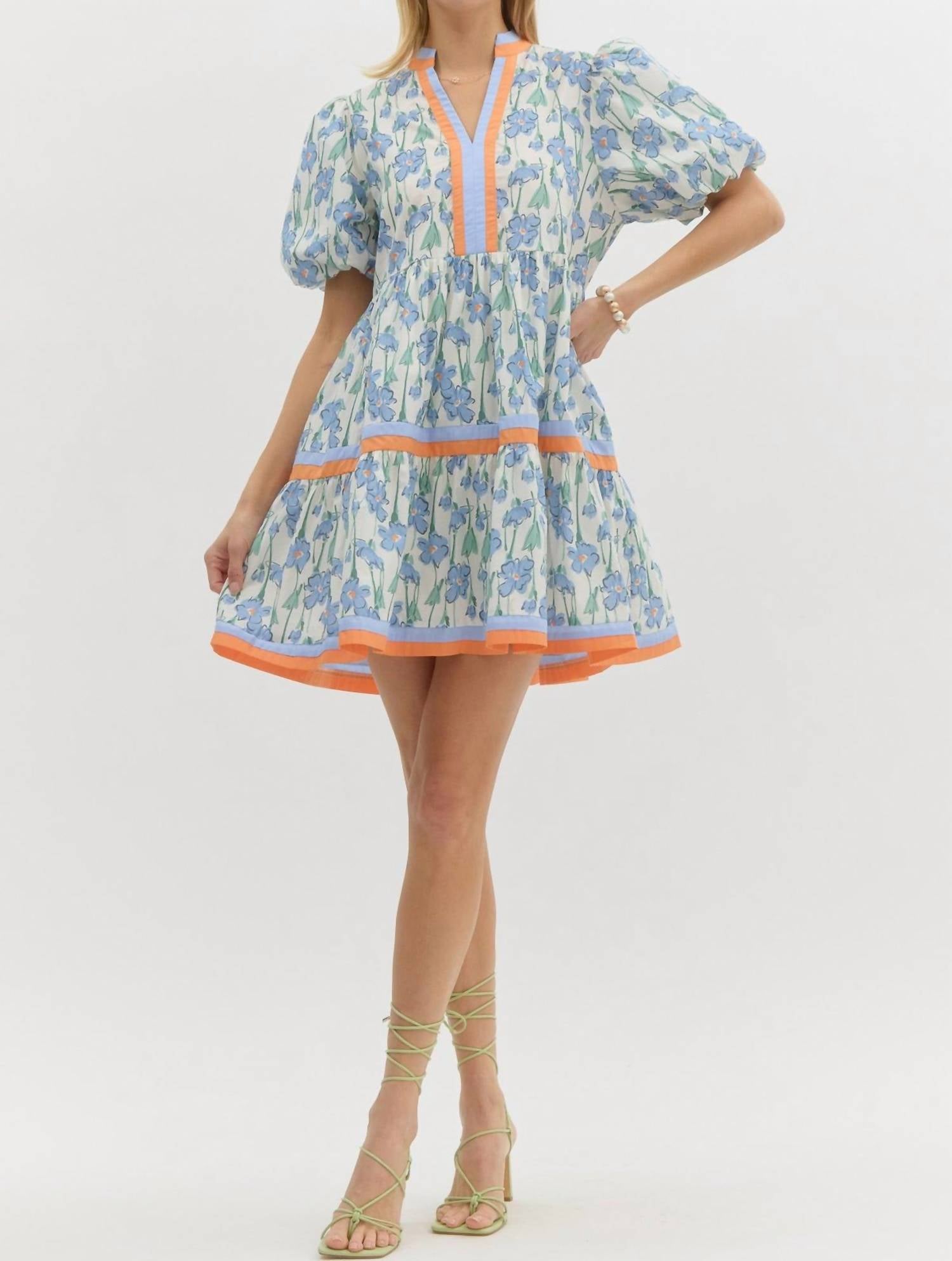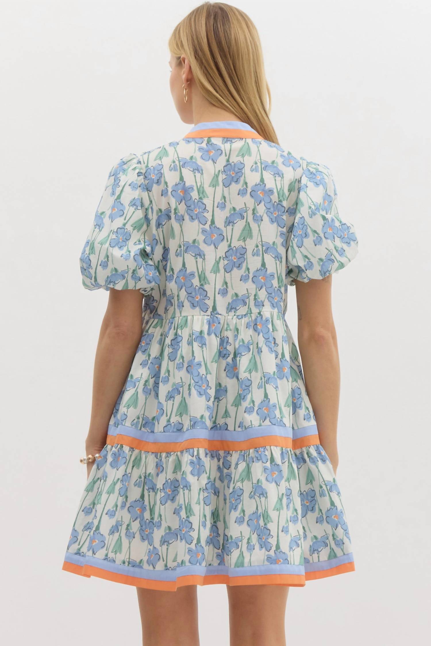 Step into summer elegance with the Garden Party Mini Dress by Entro, a vibrant blue print piece adorned with a charming floral pattern. This women's A-line silhouette features short bubble sleeves and a V-neck design, perfect for vacation or Easter festivities. Crafted from 100% cotton, this dreamy mini dress boasts a pull-on closure for convenience and style, complete with handy side pockets. Embrace the Y2K trend effortlessly with this lined, lightweight, and non-sheer woven garment, designed for endless occasions.