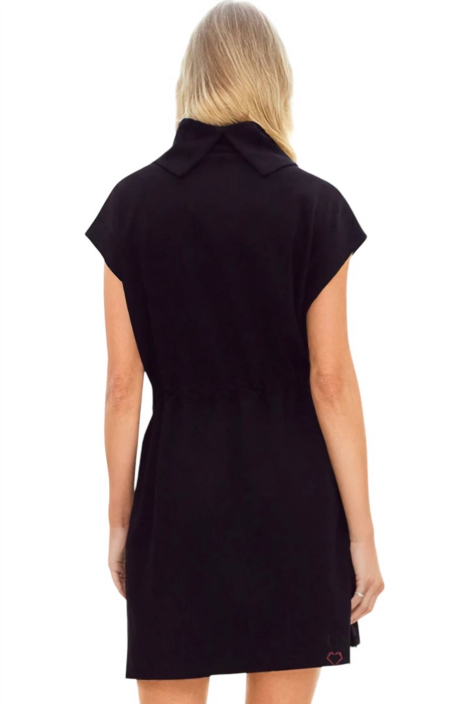 The perfect mini dress for those warmer months. Perfect blend of comfort and style. Featuring cap sleeves and a unique mock neckline design. Black sheath dress offers a flattering silhouette with its adjustable drawstring waist and convenient side pockets. Crafted from a soft and durable blend of 55% Rayon, 40% Polyester, and 5% Spandex. Designed for easy pull-on wear. Fits true to size. Simple to care for with hand wash instructions.