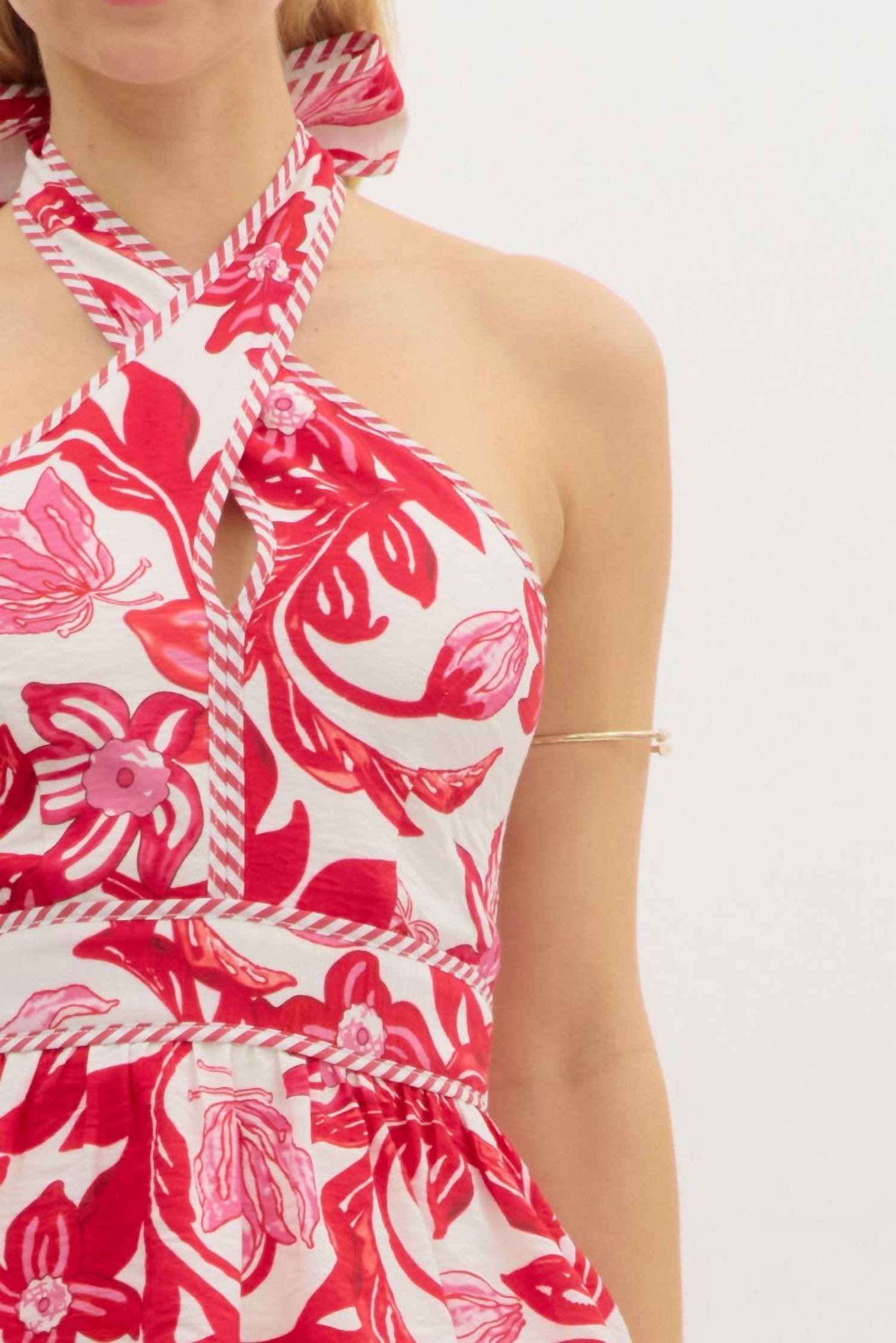 Just add slides or mules and you are good to go. Embrace elegance with the Entro Halter Bow Tied Tiered Paisley Midi Dress, perfect for your next holiday party. This sleeveless dress in vibrant red features a flattering A-line silhouette and a delicate floral paisley pattern. Crafted from lightweight woven material, it boasts a stylish tie closure at the halter neckline. Care instructions: Machine wash.