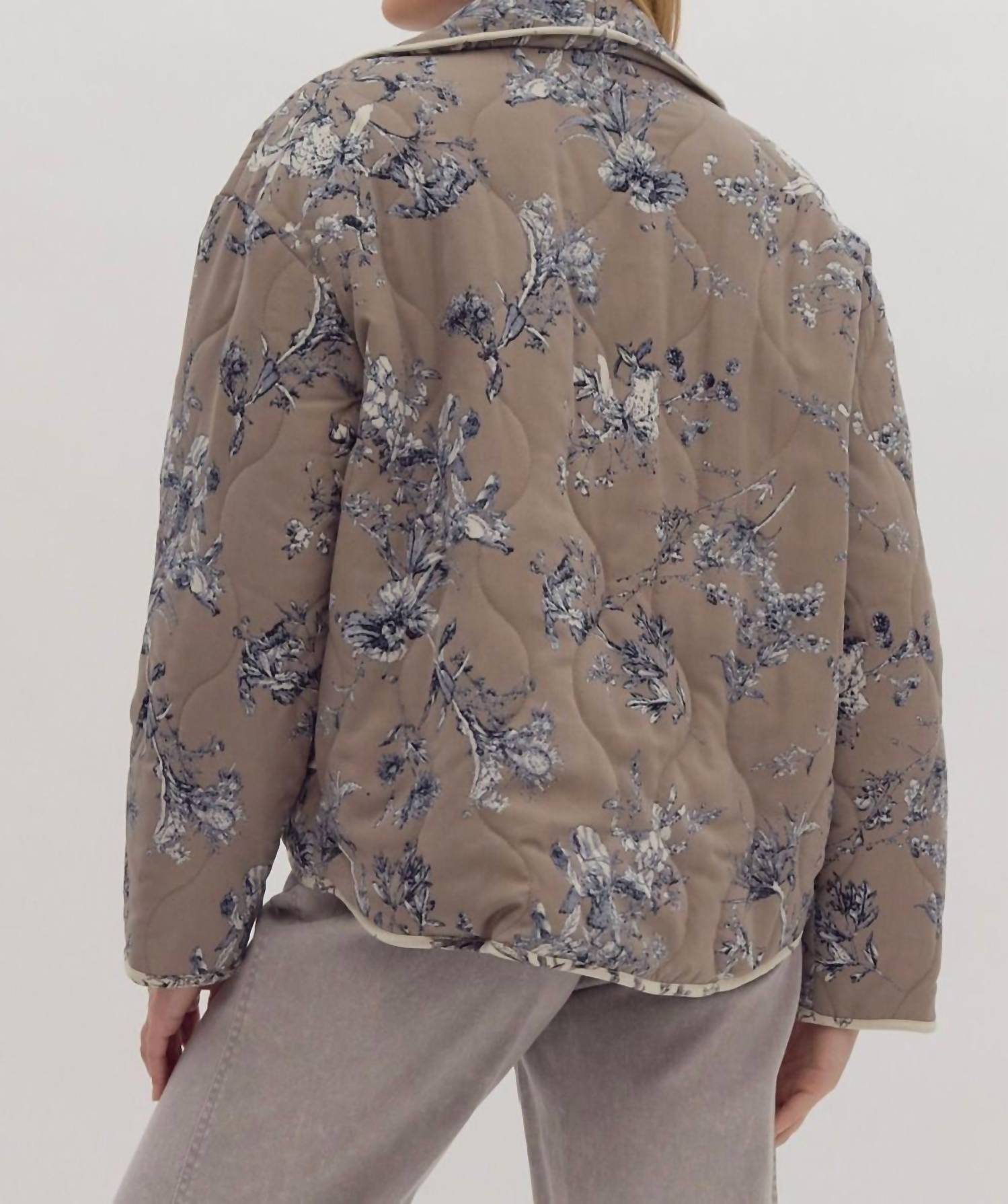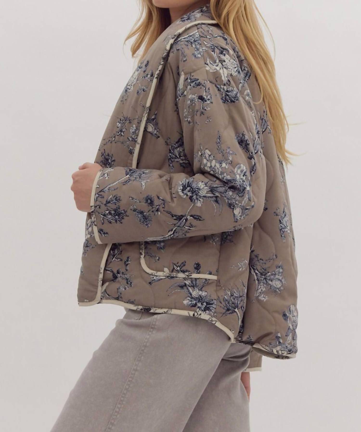 Floral Print Long Sleeve Open Front Jacket. Fabric has no stretch and Lightweight. Functional pockets. Lined. 100% Polyester. Hand wash cold, no drum drying.