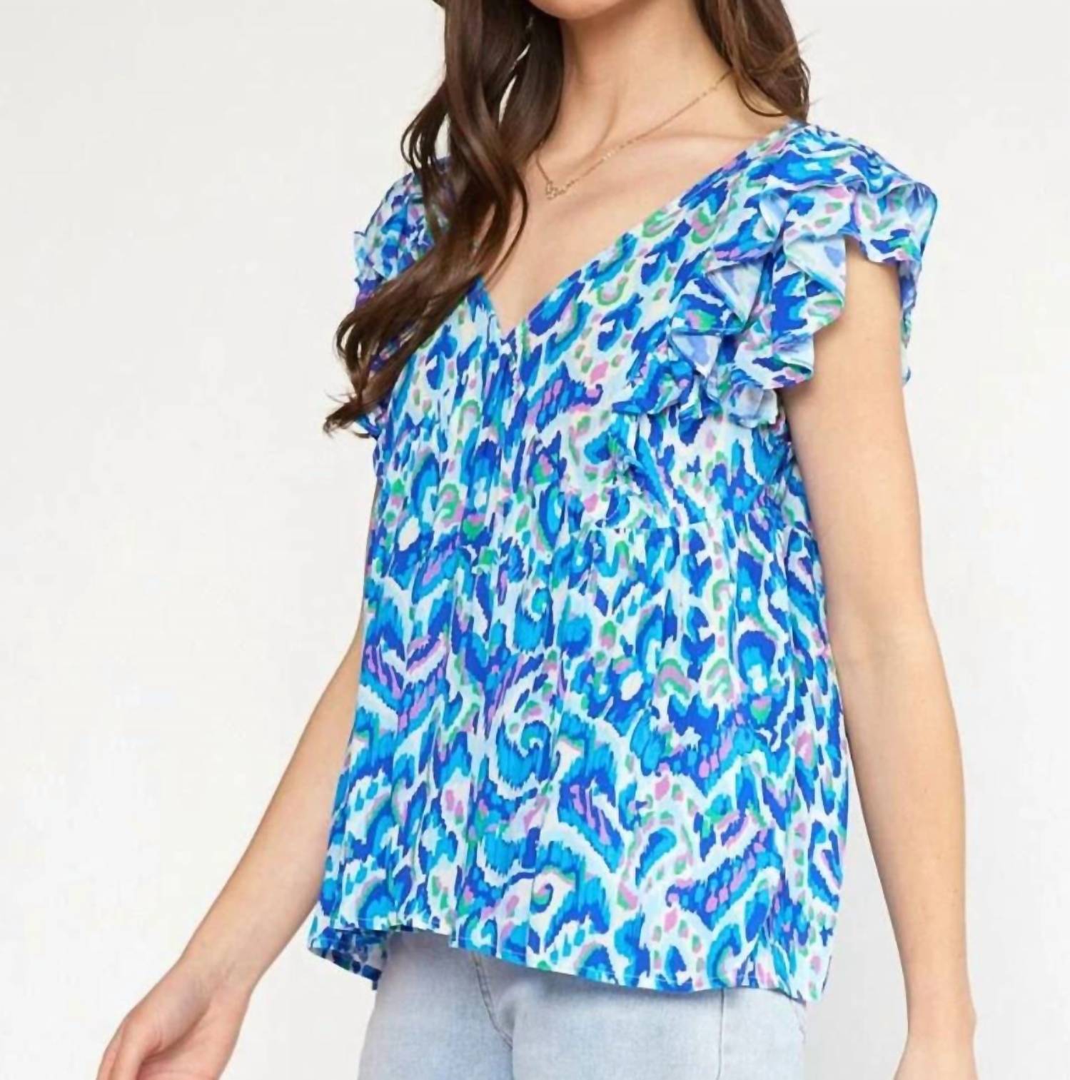 A timeless blouse that will never go out of style. Embrace effortless elegance with the Lexie Ruffle Sleeves Top by Entro, crafted for your summer outings. This blue cap sleeve top is made from 100% cotton, offering comfort and style with its flattering v-neckline and playful tie at the back. Designed to fit true to size, this piece is perfect for a beach day or brunch with friends. Care for it with a simple routine: hand wash cold, line dry, and iron on low heat. Closure: Pull on.