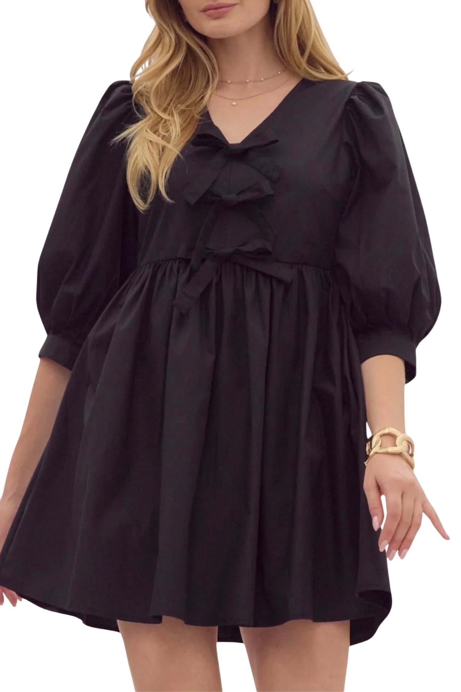 Entro - Puff Sleeve Tie Front Dress