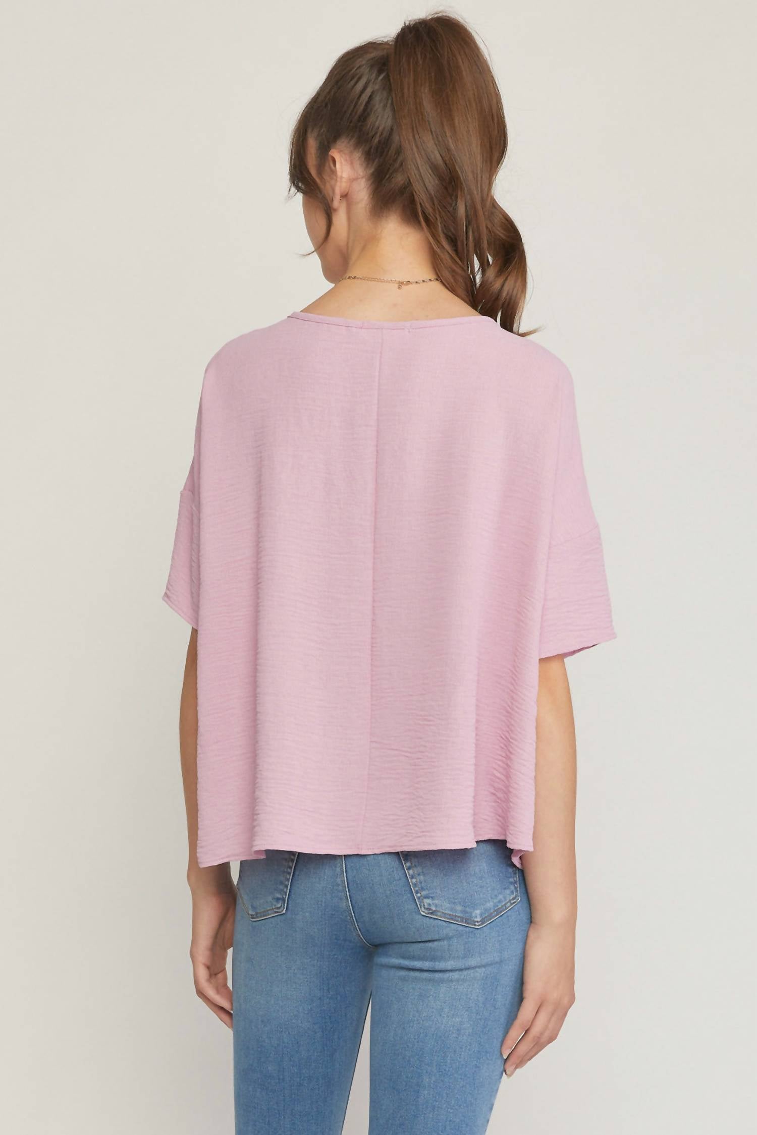 A versatile blouse that works from desk to dinner! Meet the Round Neck Babydoll Top by Entro, your go-to for effortless style in charming orchid pink. This blouse showcases short sleeves with dropped shoulders and a playful oversized babydoll a-line silhouette, offering a flattering fit across its sizes. Crafted from 100% polyester and made in the USA, it features a convenient pull-on closure. Care: Hand wash or dry clean. Sizes from Small to 2X available, with bust measurements ranging from 46" to 60" and length from 24" to 30".